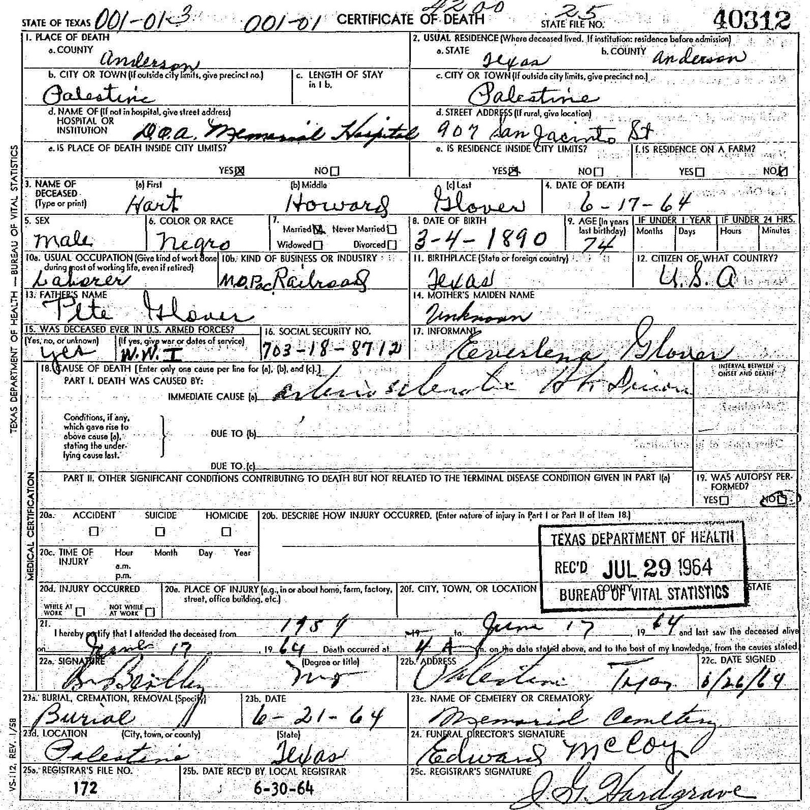 Born: March 4 1890 - Texas