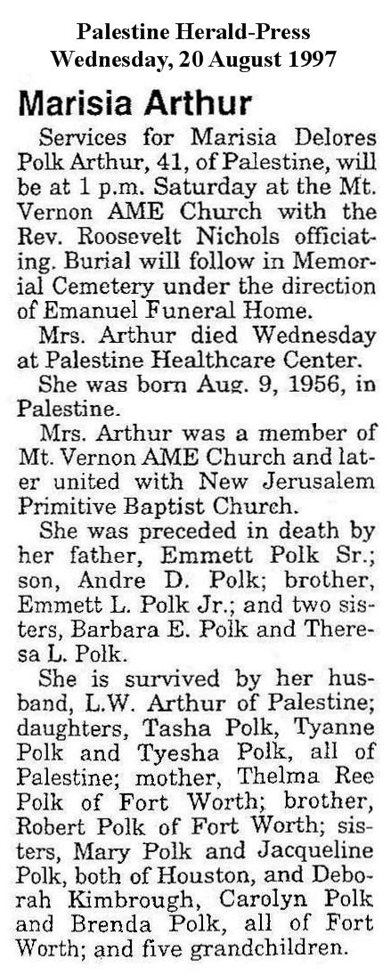 Arthur of Palestine; daughters, Tasha Polk, Tyanne Polk and Tyesha