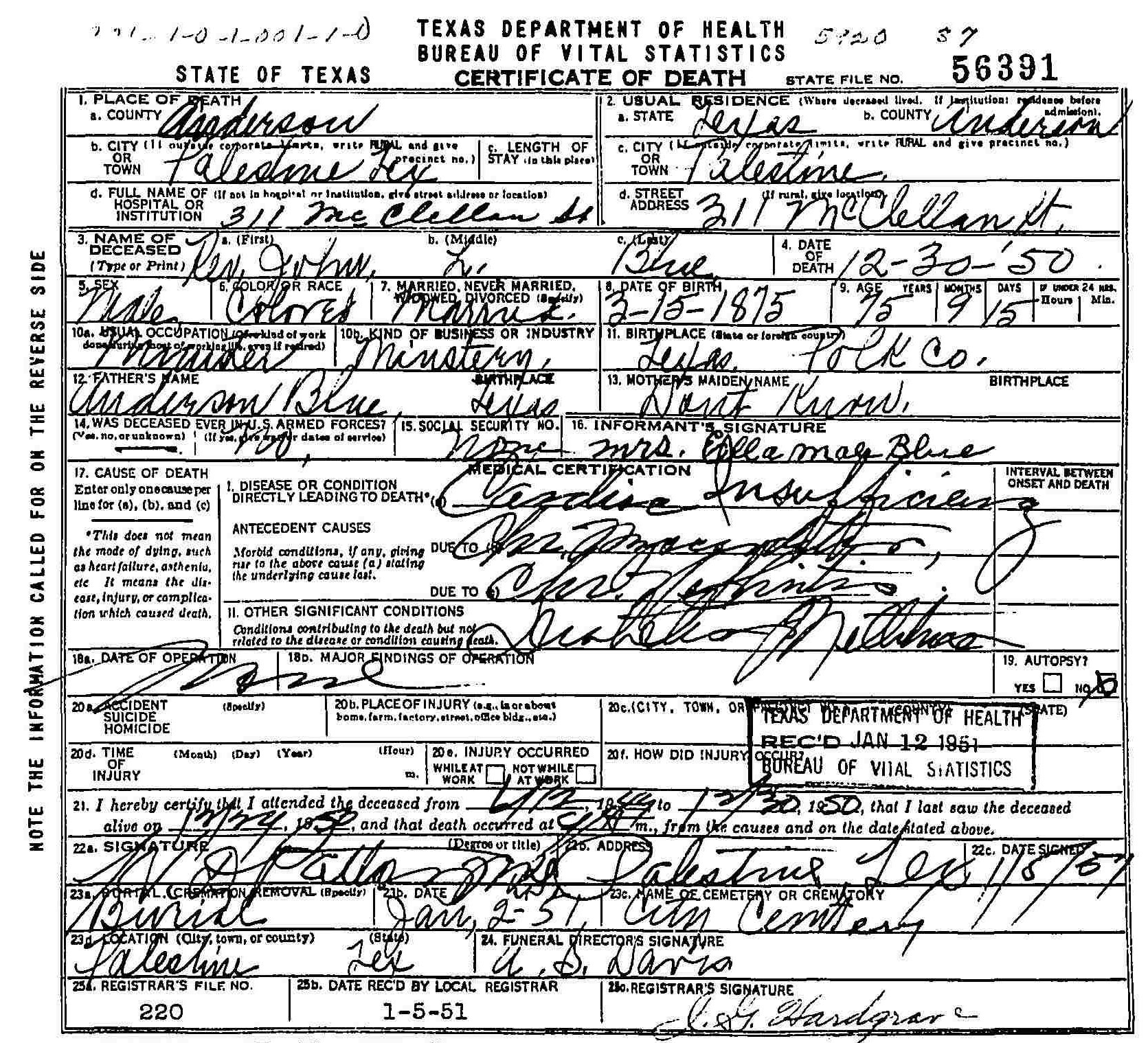 15 1875 - Polk County, Texas