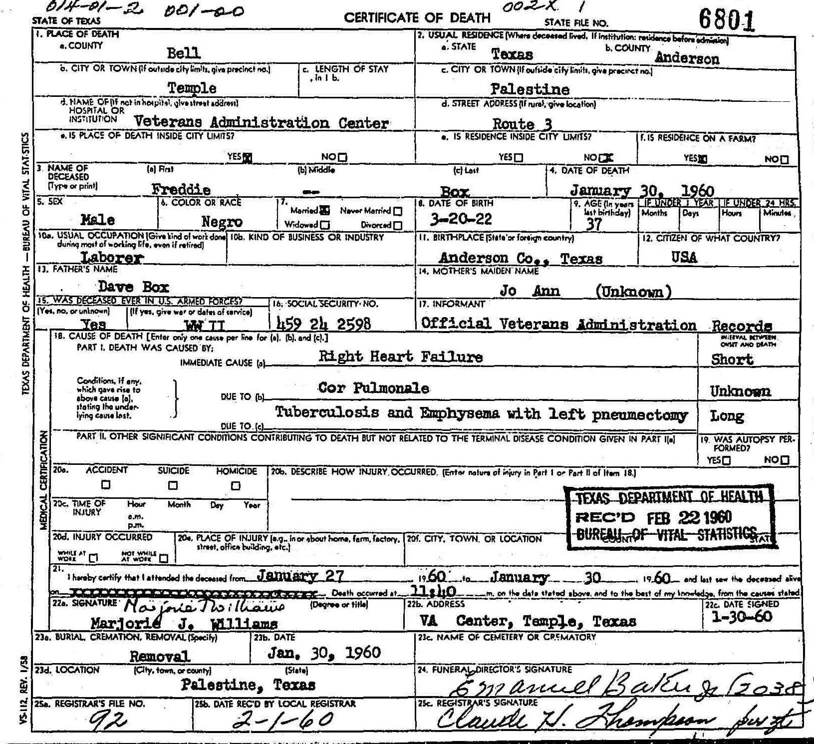 20 1922 - Anderson County, Texas