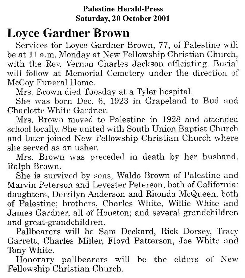 December 6 1923 - Grapeland, Houston, Texas
