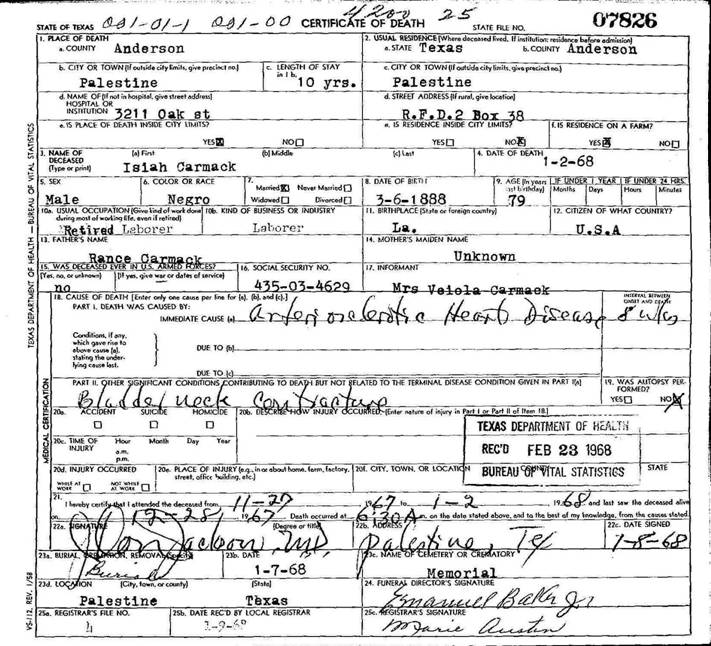 Born: March 6 1888 - Louisiana