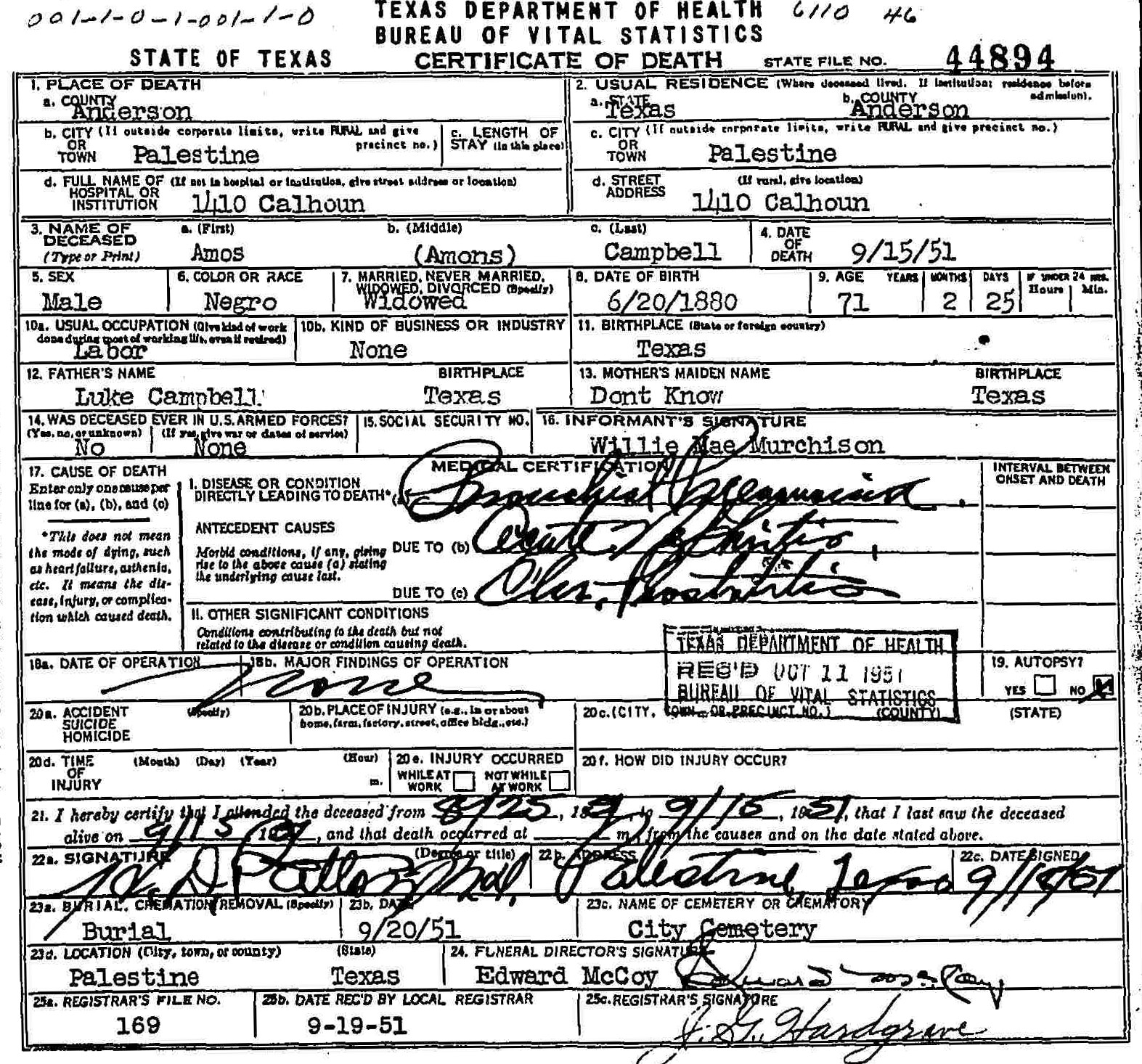 Born: June 20 1880 - Texas