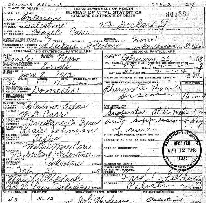 Born: January 8 1912 - Palestine, Anderson,