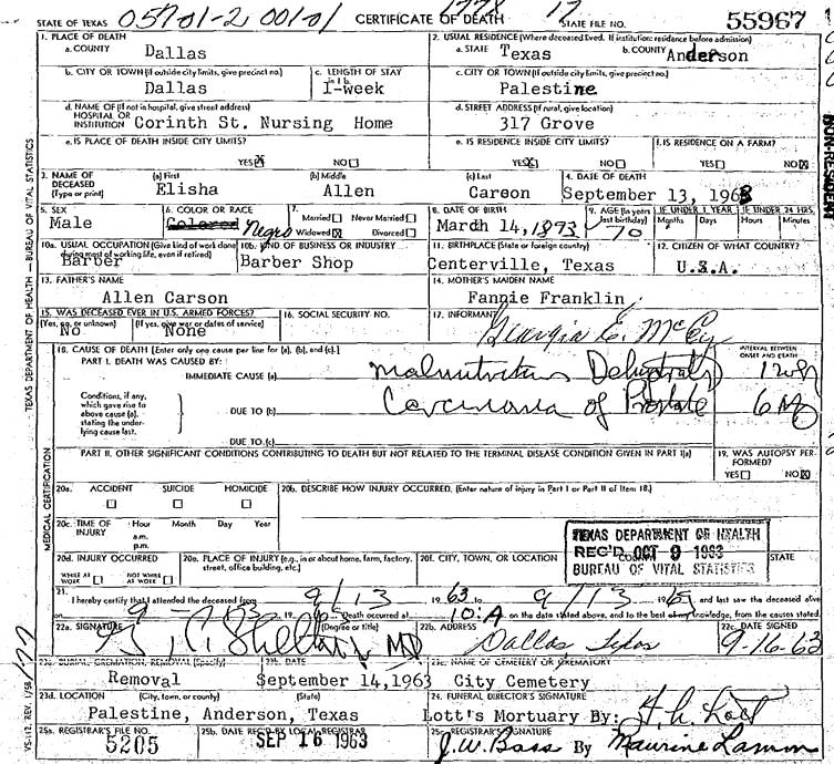 Died:  September 13 1963 - Dallas, Dallas, Texas