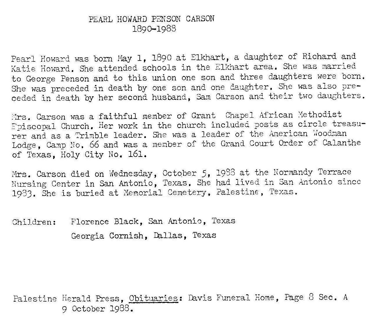 Born: May 1 1890 - Elkhart, Anderson, Texas