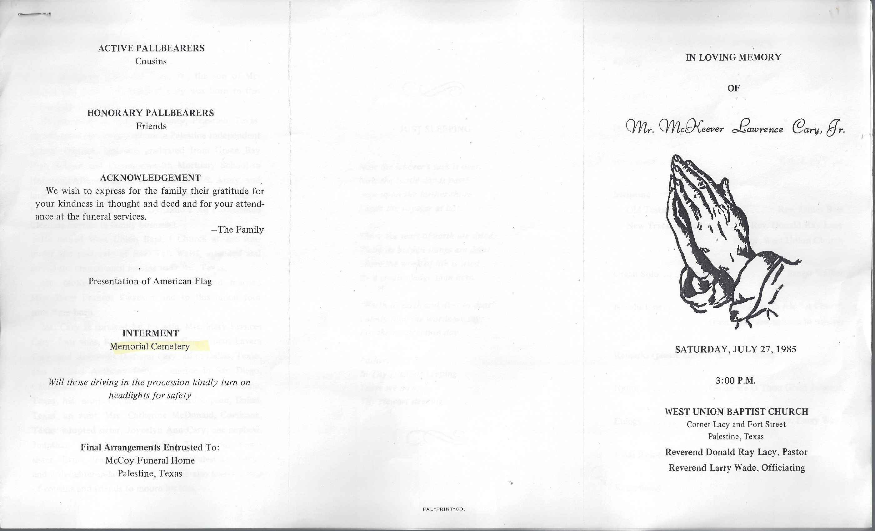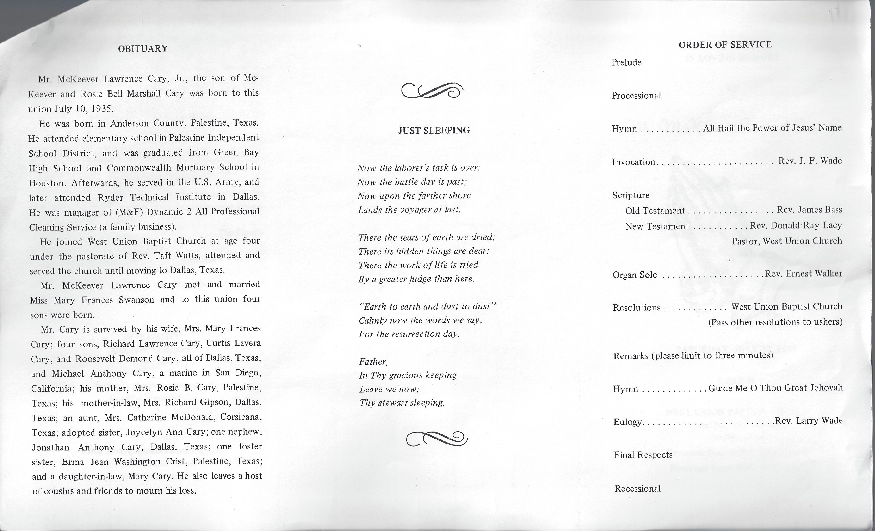 Born: July 10 1935 - Anderson County, Texas