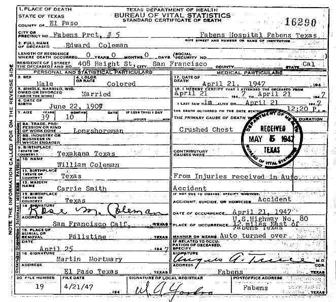 Born: June 22 1907 - Texarkana, Bowie, Texas