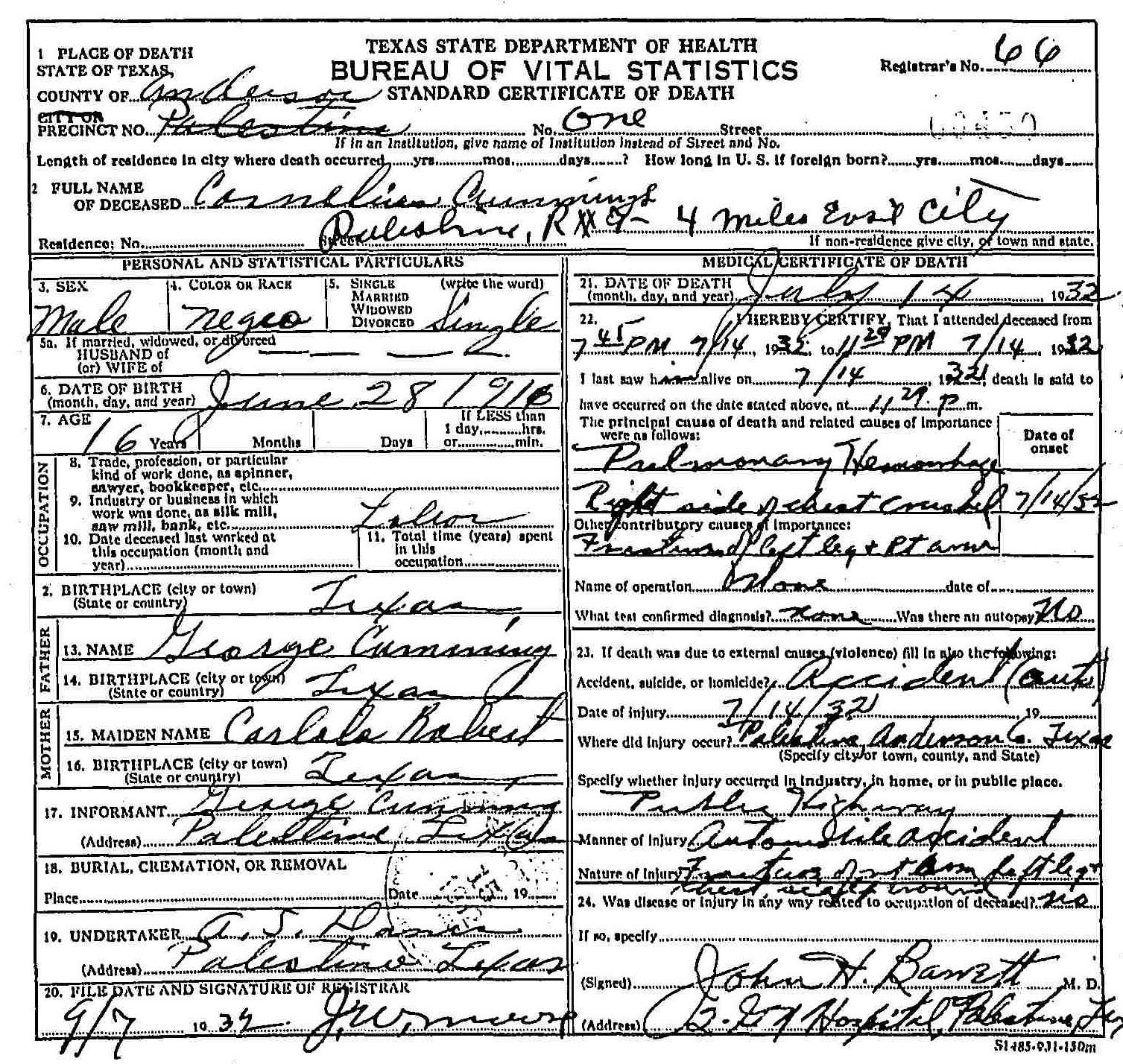 Born: June 28 1916 - Texas