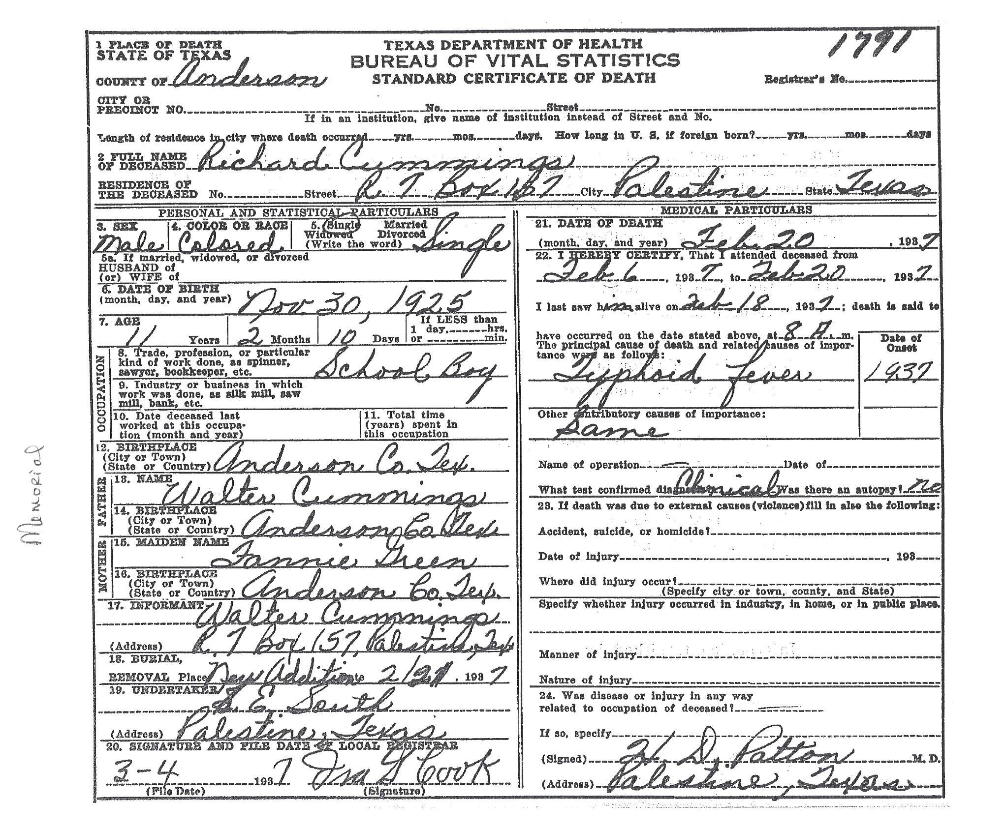 Born: November 30 1925 - Anderson