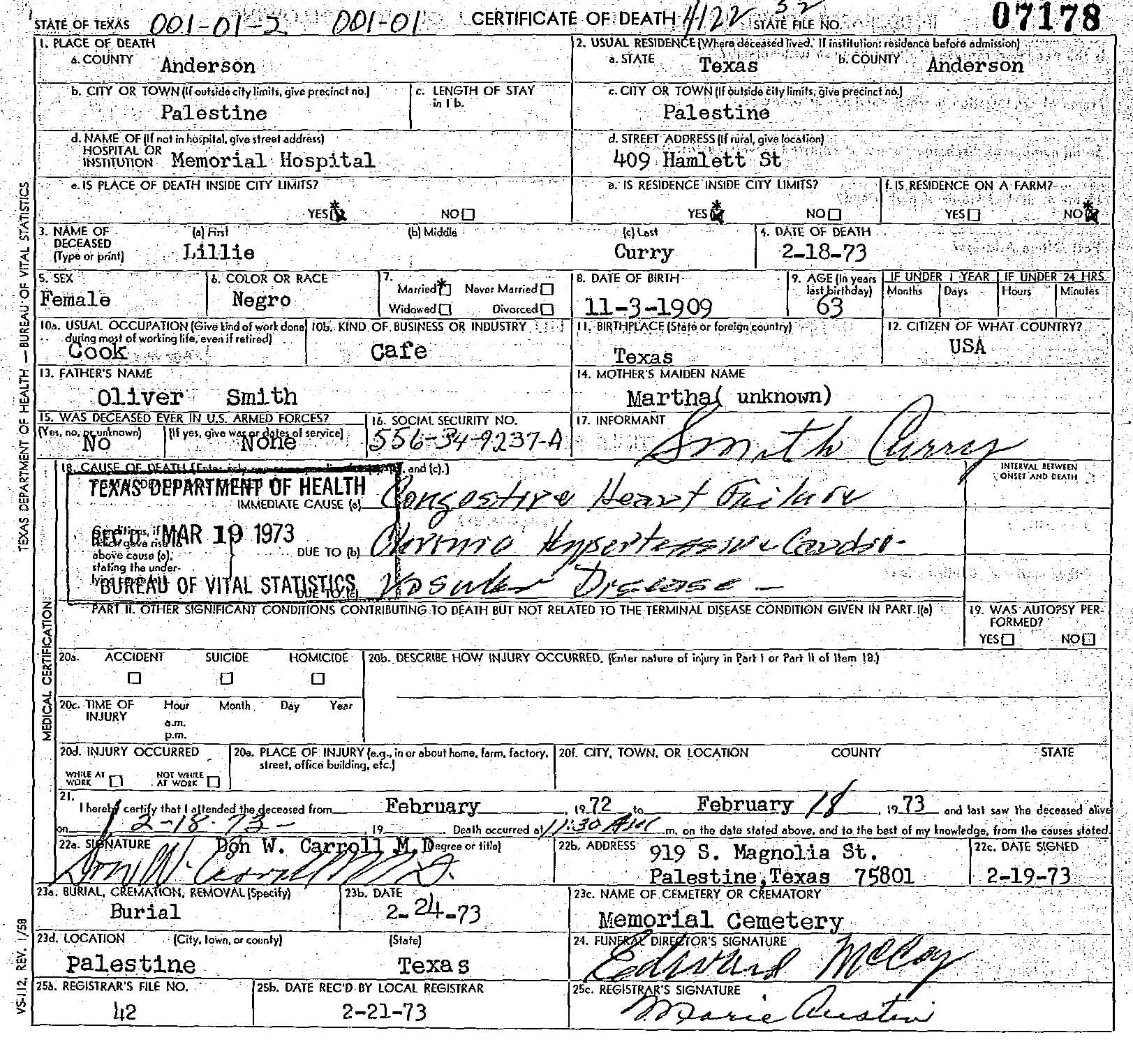 Born: November 3 1909 - Texas