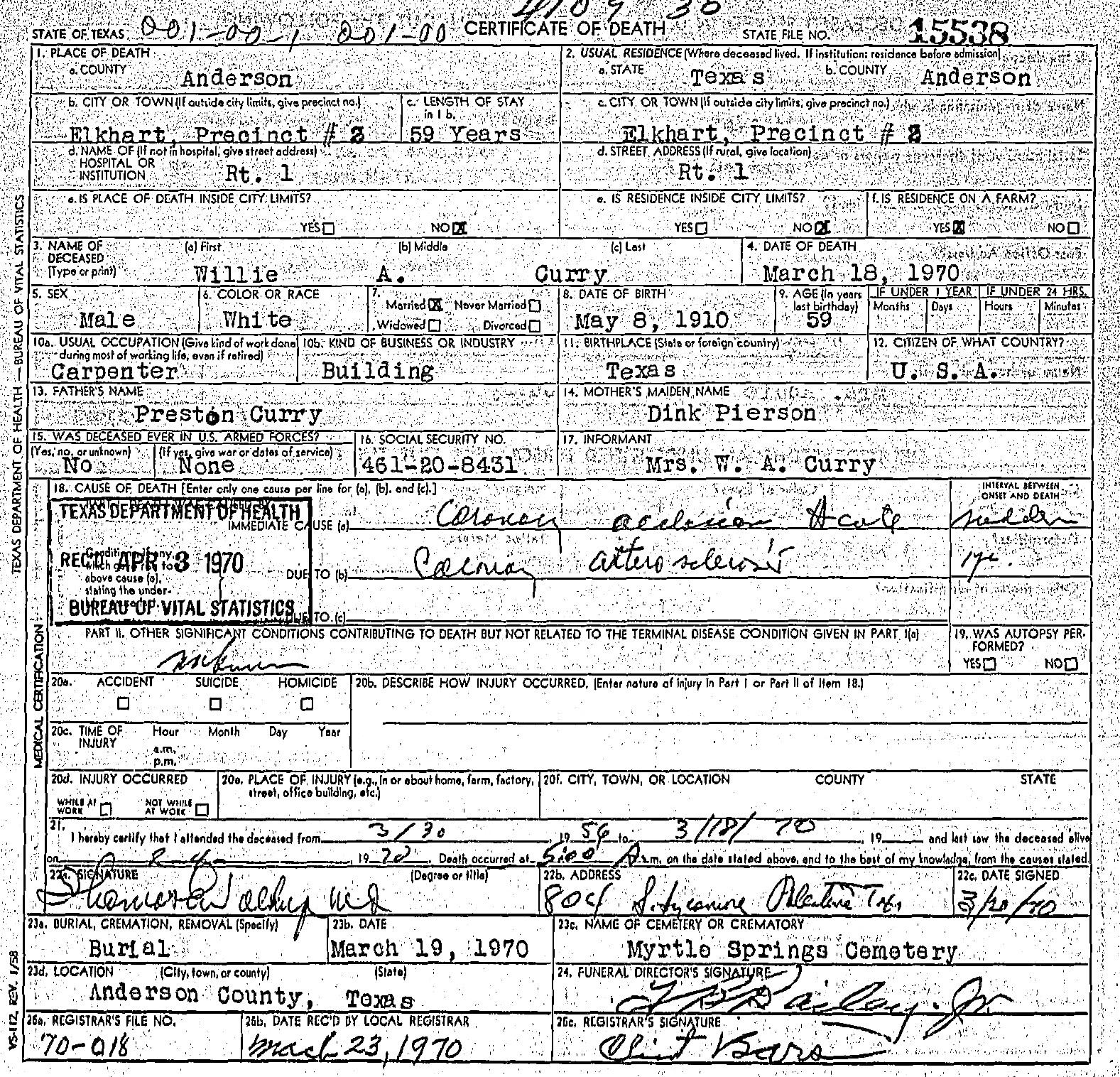 Born: May 8 1910 - Texas