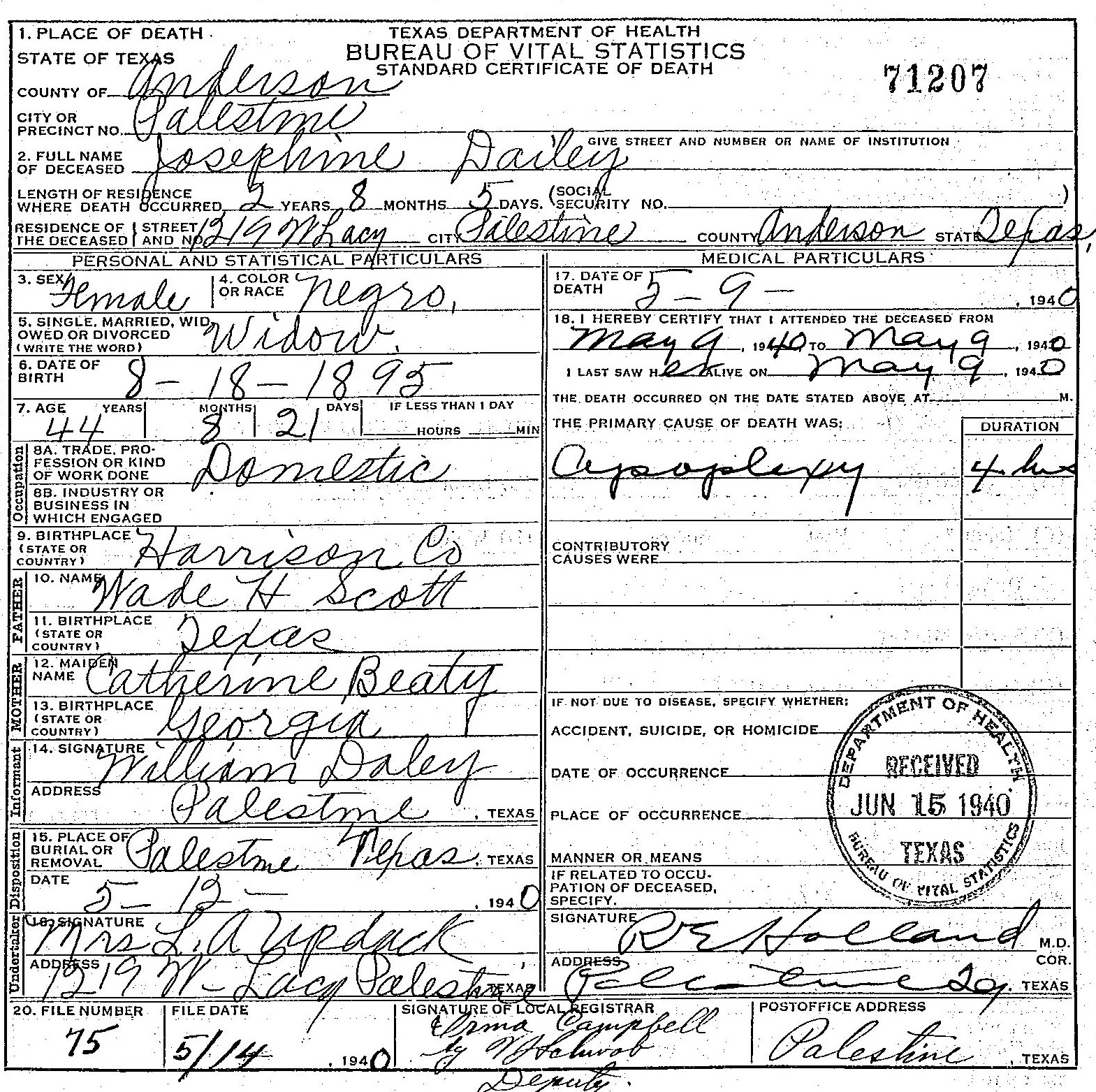 Born: August 18 1889 - Harrison County,