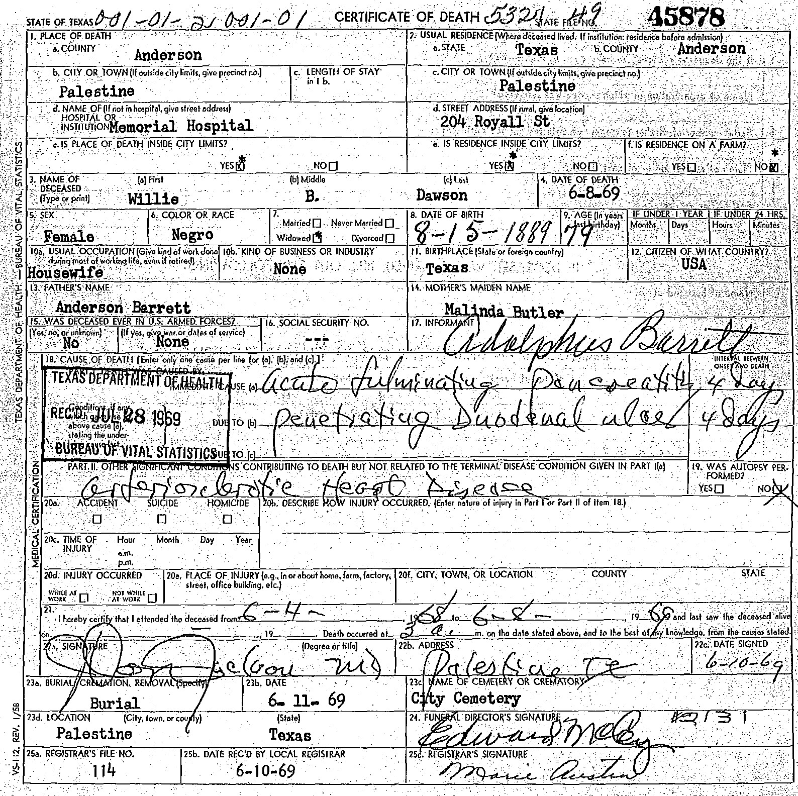 Born: August 14 1889 - Texas