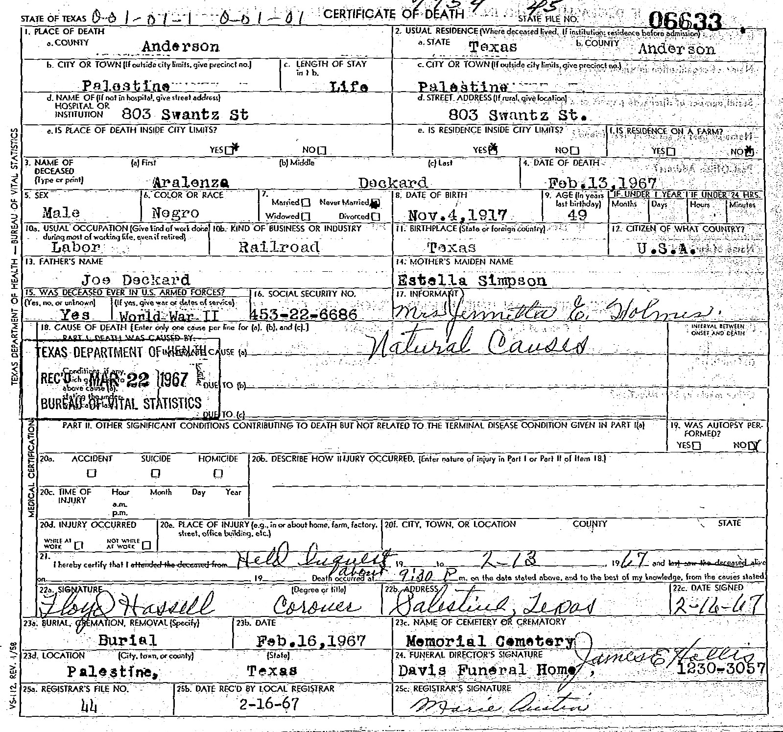 Born: November 4 1917 - Texas