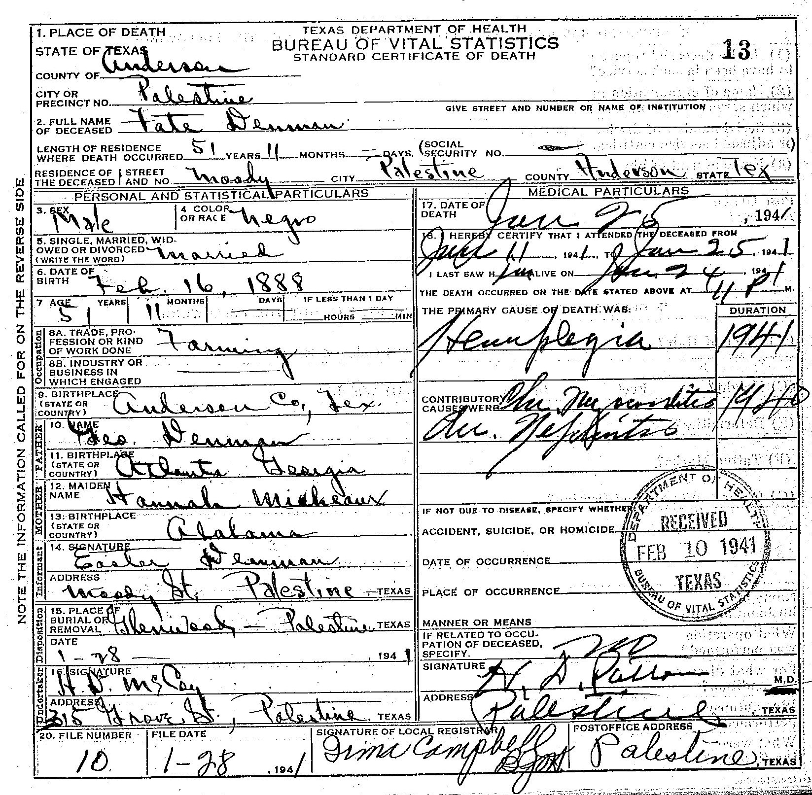Born: February 16 1888 - Anderson County,