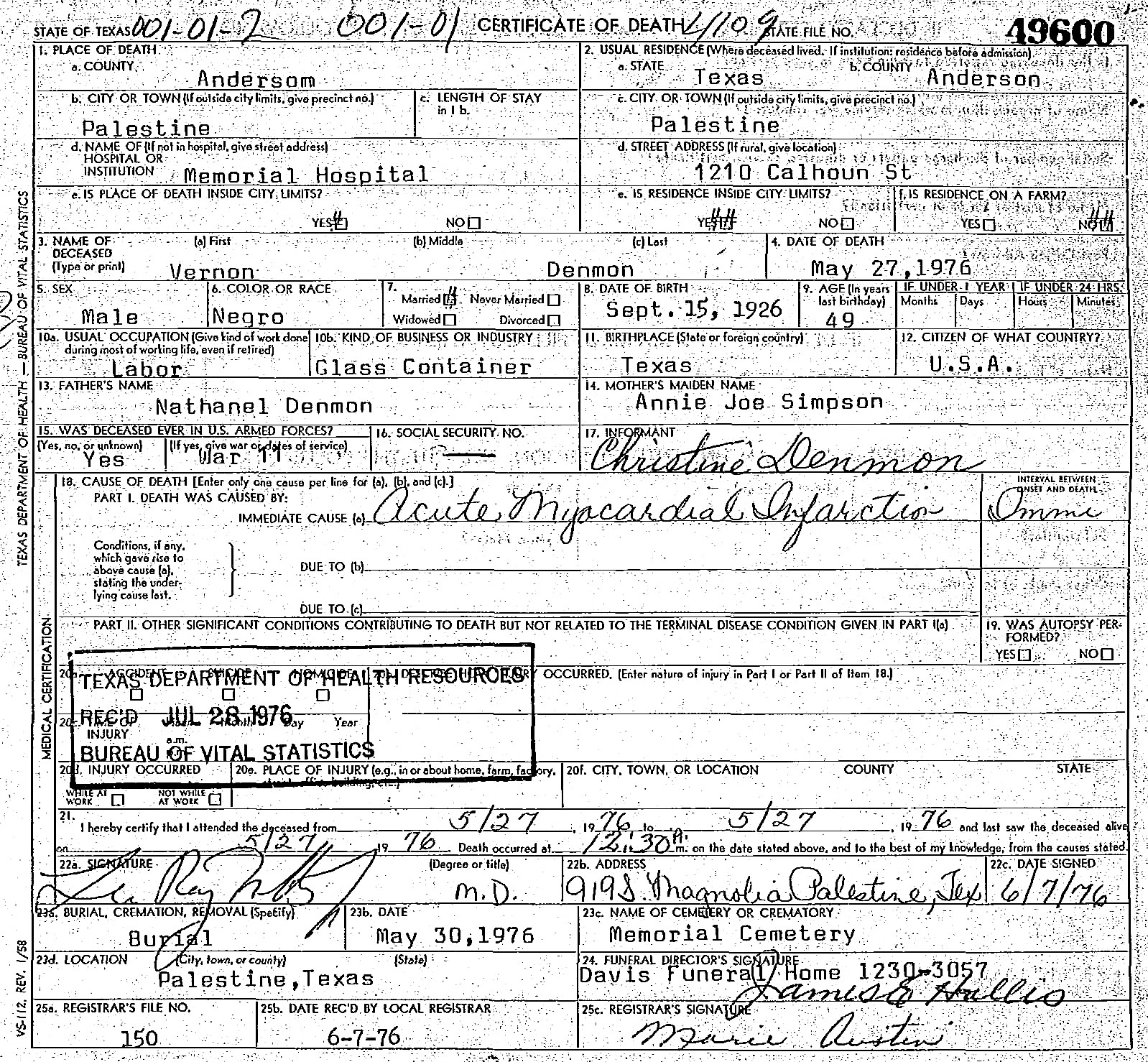 DENMAN VERNON H