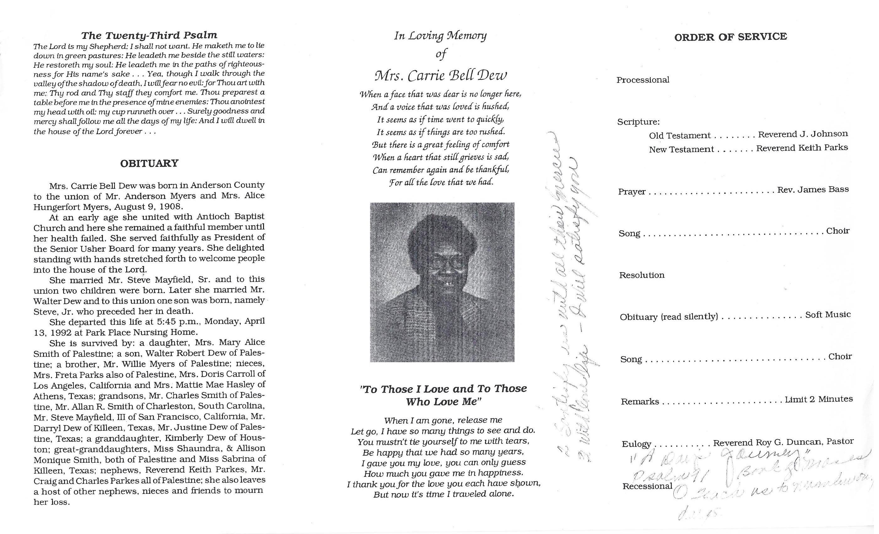 Spouse:  Steve Mayfield, Sr. - February 13 1927 - Anderson County, Texas