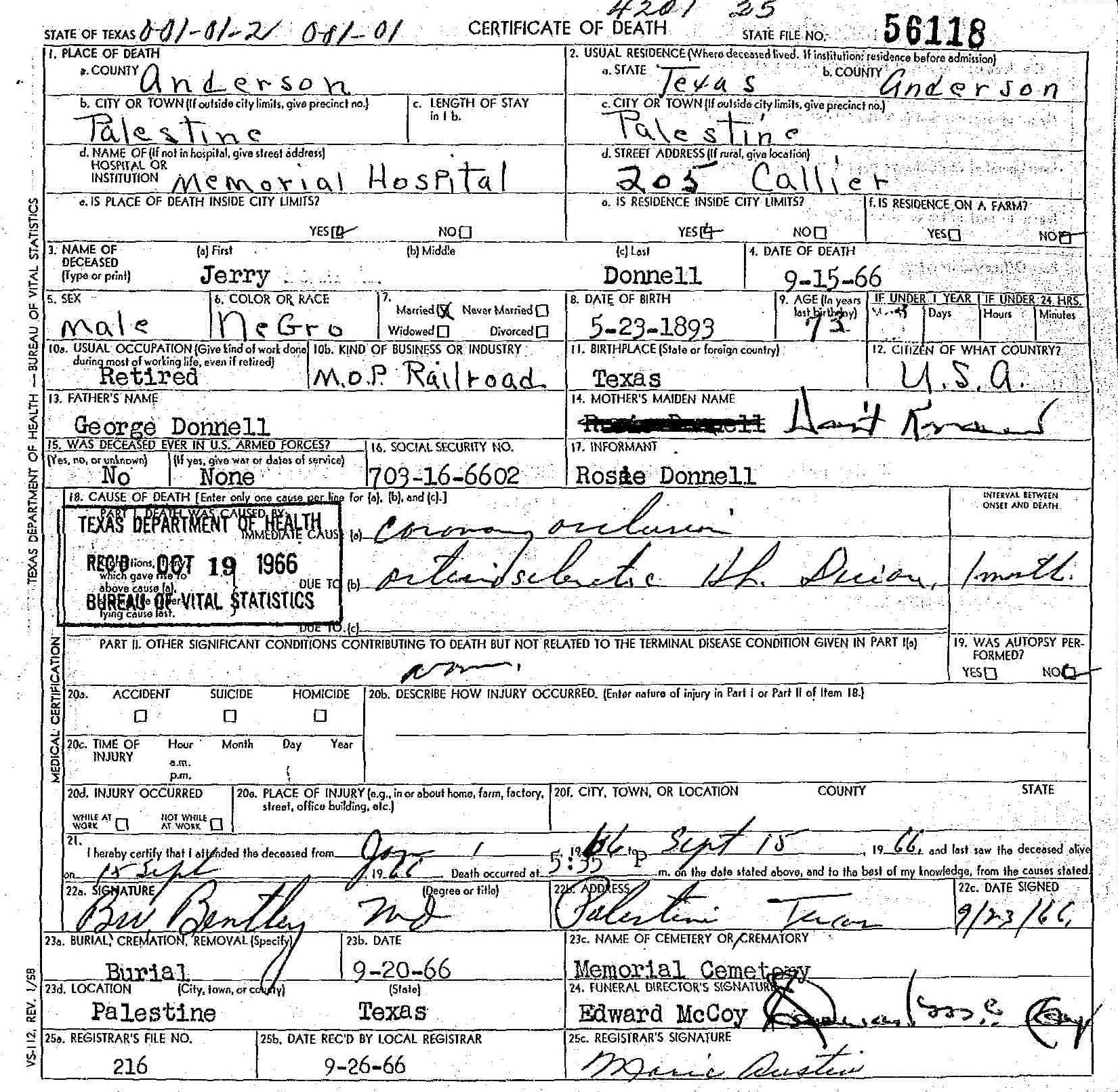 Born: May 23 1893/1892 - Texas