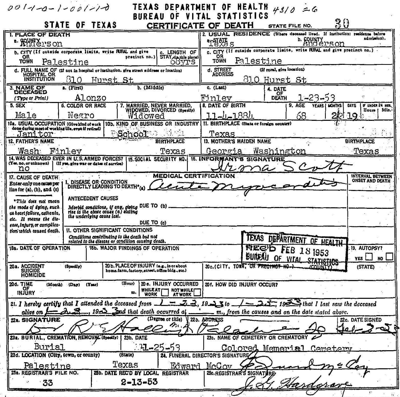 Died:  January 23 1953 - Palestine, Anderson, Texas