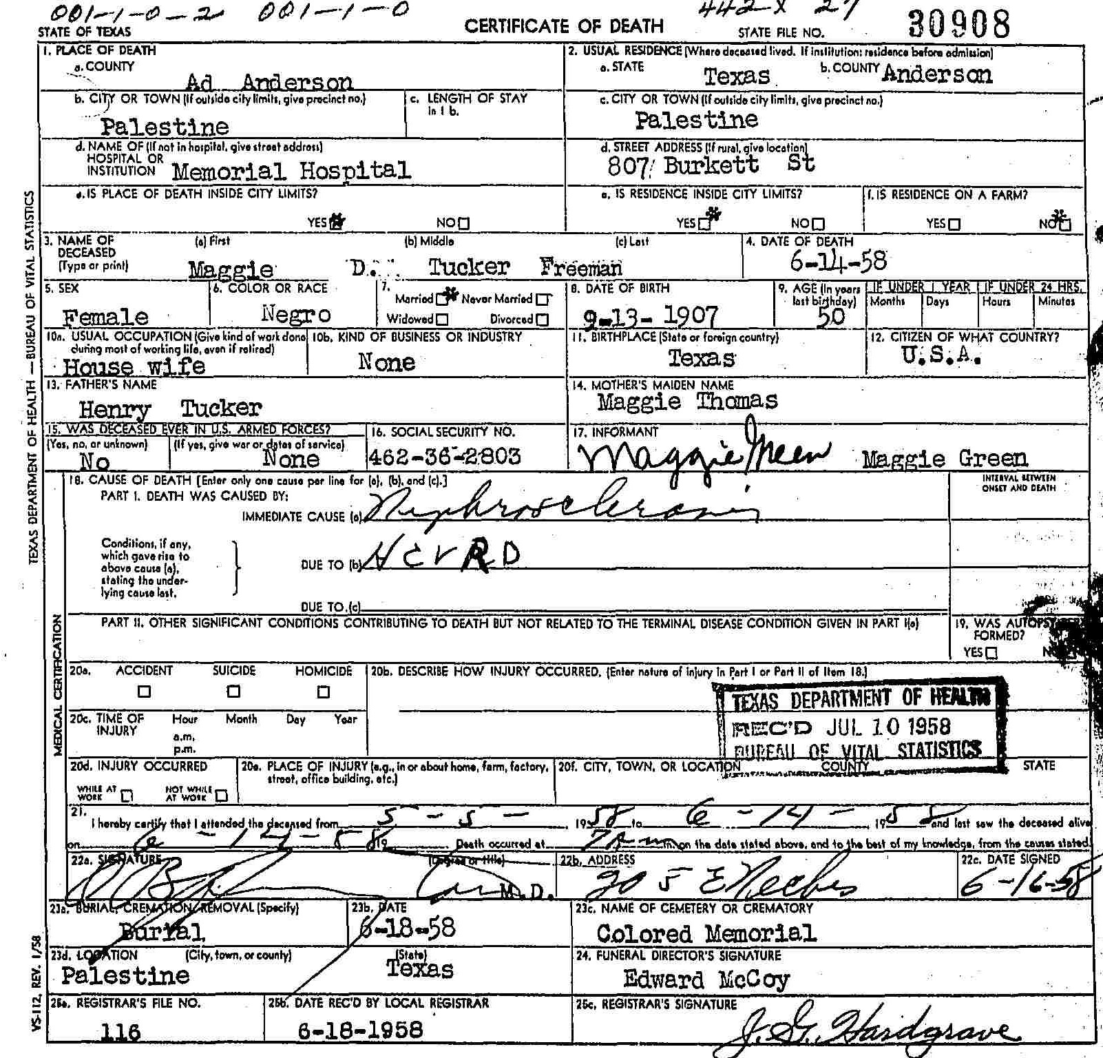 Born: September 13 1907 - Texas