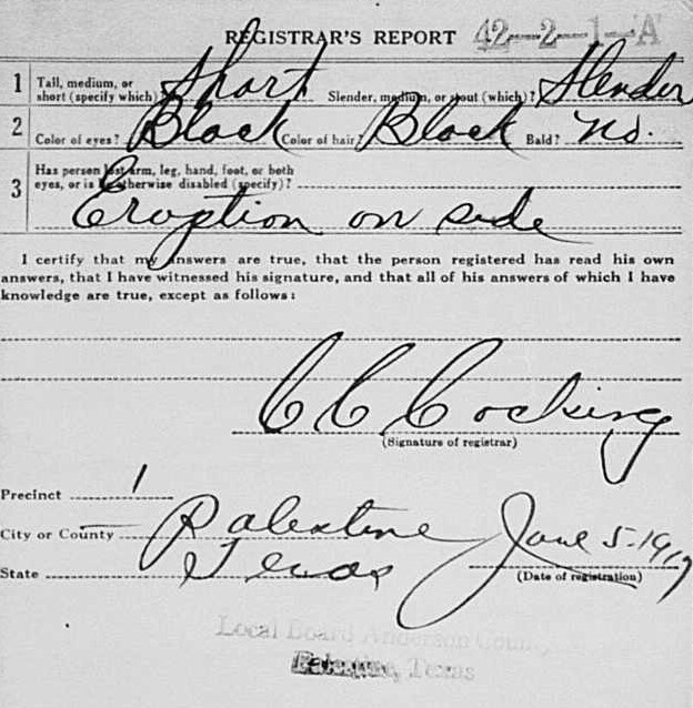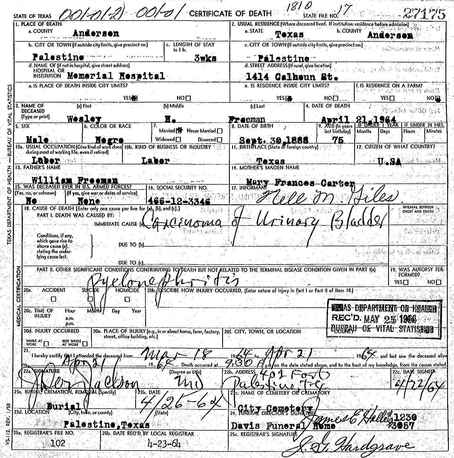 Died:  April 18 1964 - Palestine, Anderson, Texas