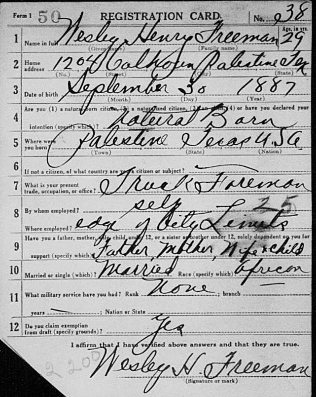 Spouse:  Lucy Mary Josey - November 30 1916 - Anderson County, Texas