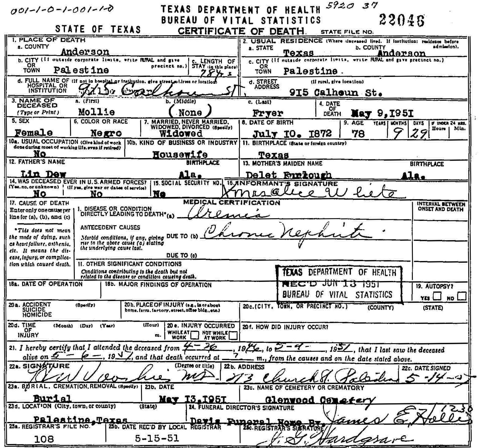 Born: July 10 1872 - Texas