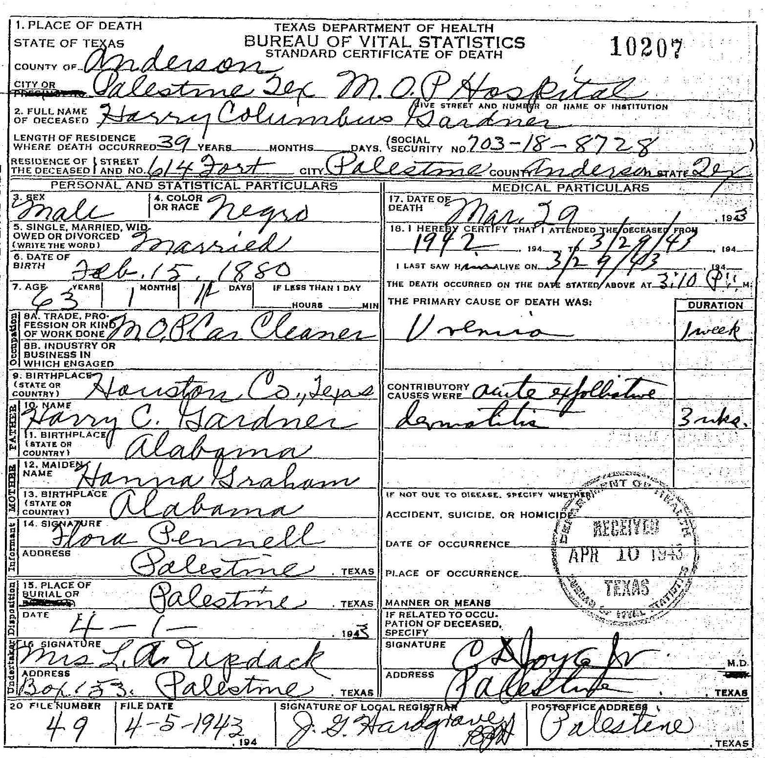 Born: Feb 15 1876/1880 - Houston County,