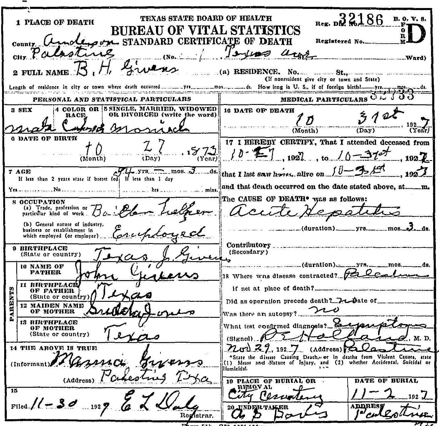 Born: October 27 1873 - Texas