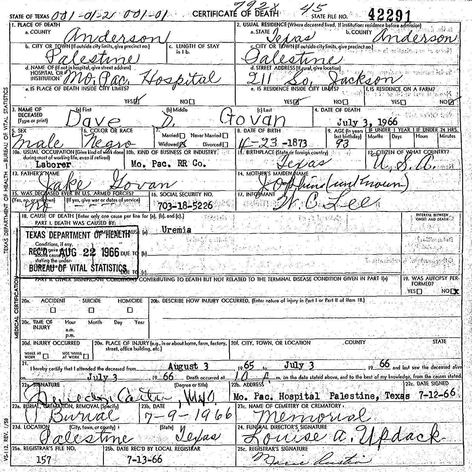 Born: April 23 1872/1873 - Texas
