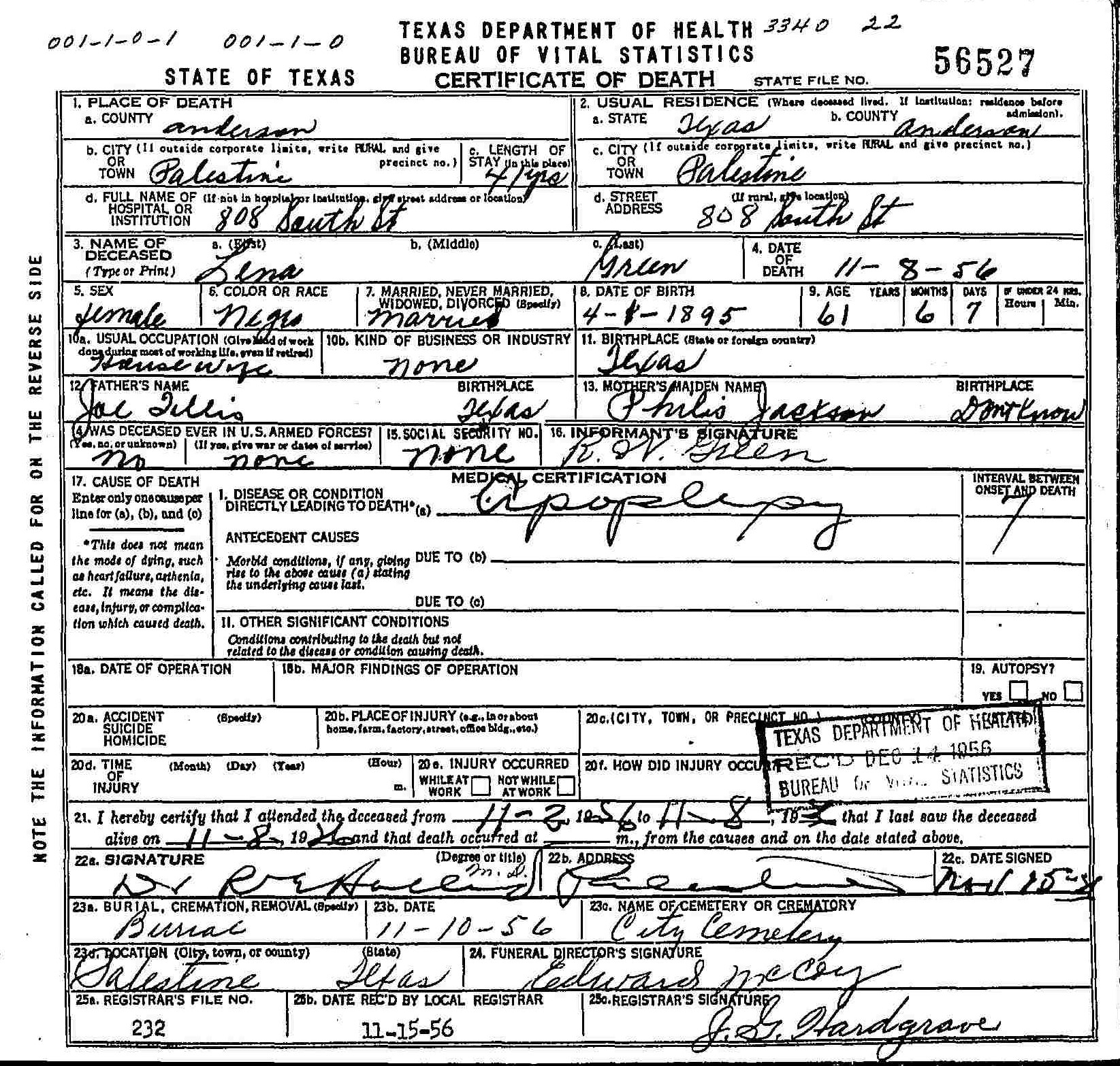 Born: April 1 1895 - Texas