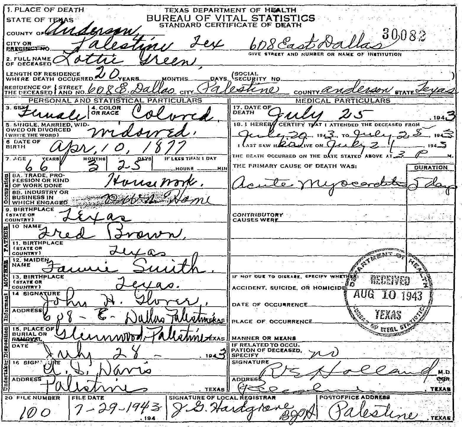 Born: April 10 1877 - Texas