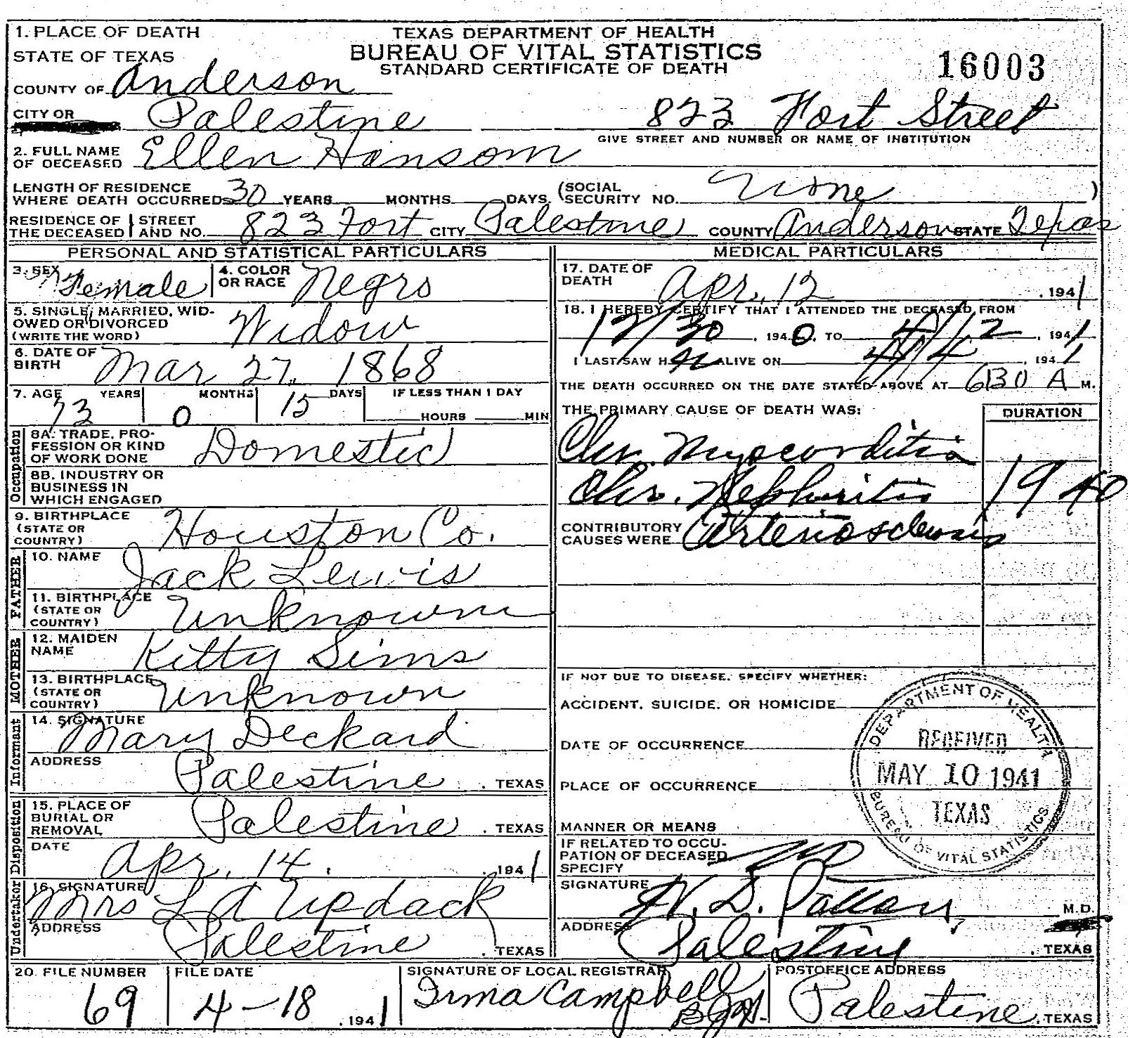 transcribe Born: March 27 1868 - Houston