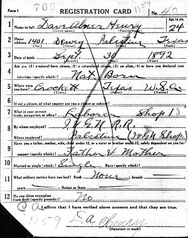 Born:  September 29 1893 - Crockett, Houston, Texas