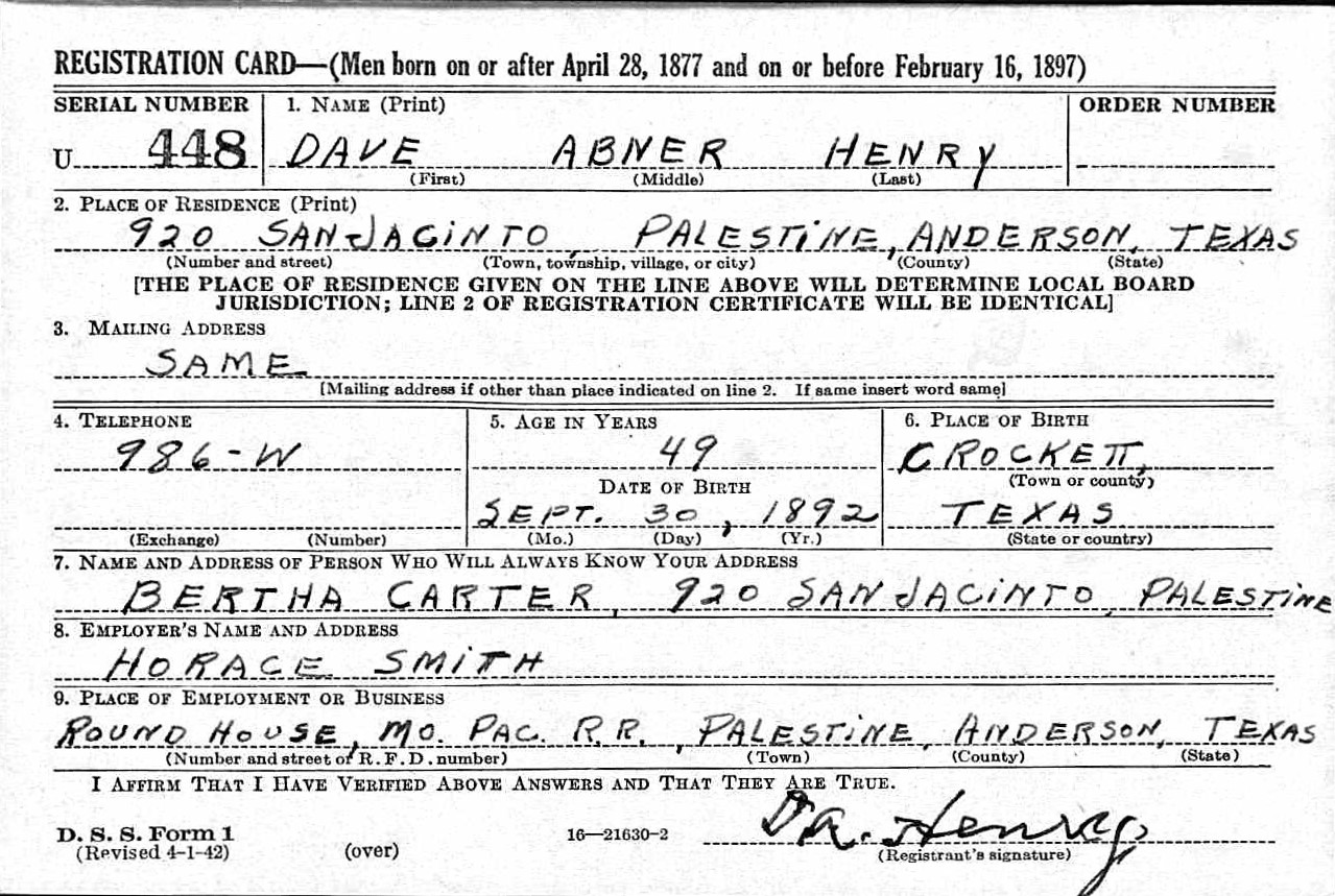 Notes: Jun 1937: Name listed as DAVE ABNER HENRY