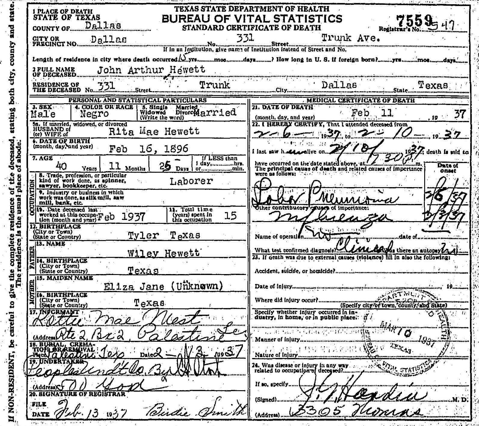 Died:  February 12 1937 - Dallas, Dallas, Texas