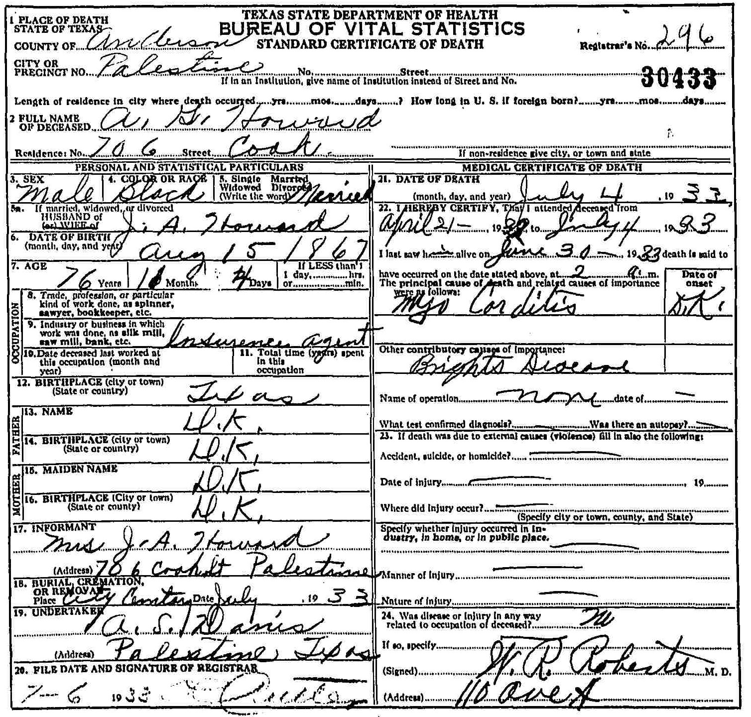 Born: August 15 1867 - Texas
