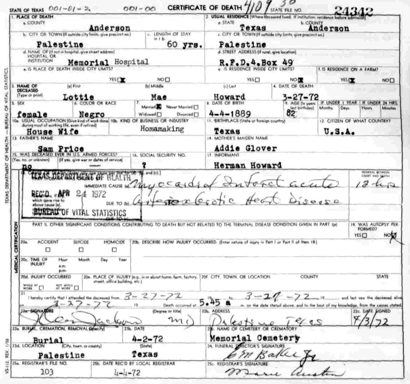 Born: April 4 1889 - Texas