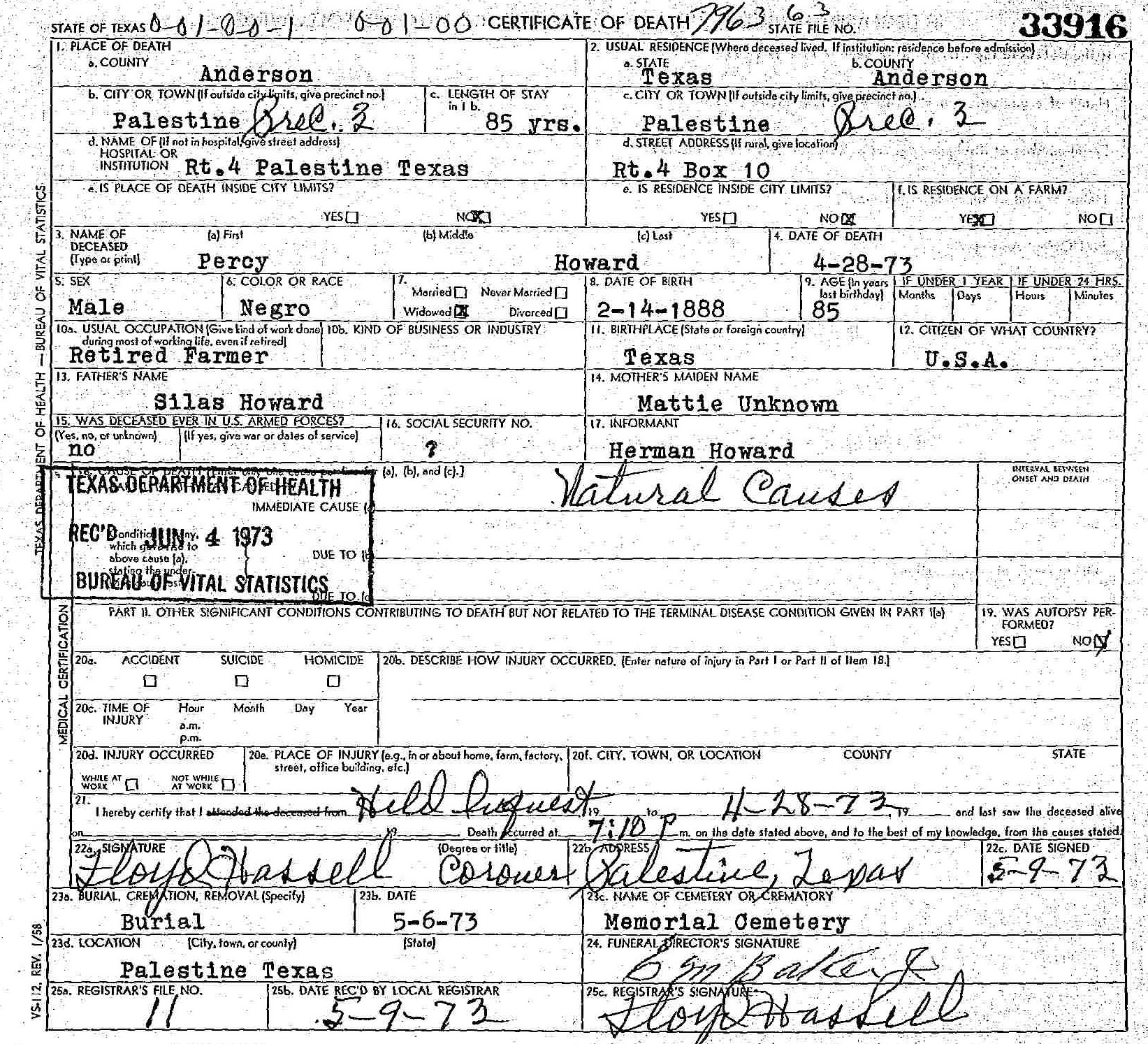 Born: February 14 1888 - Texas