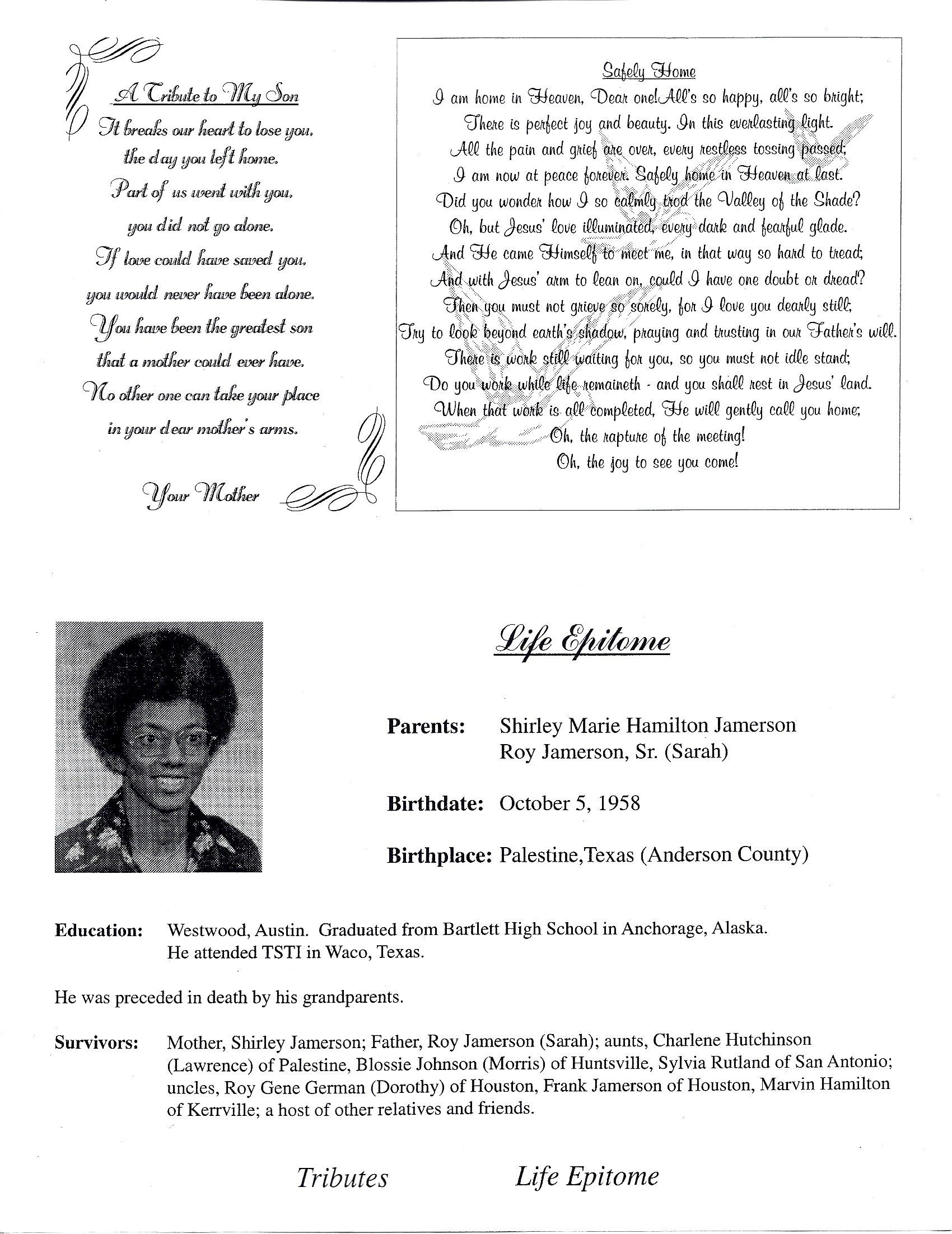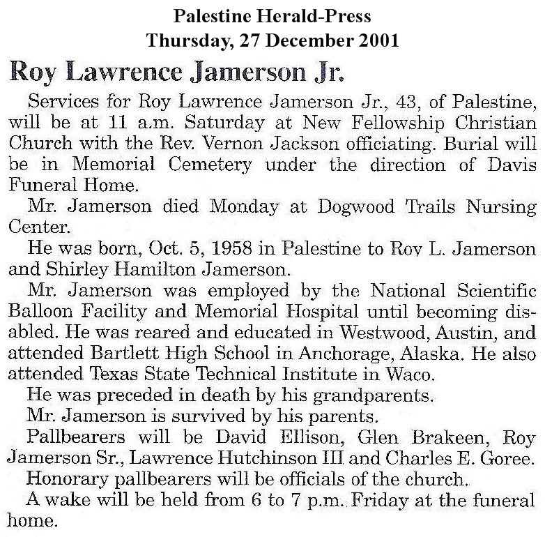Born: October 1958 - Palestine, Anderson,