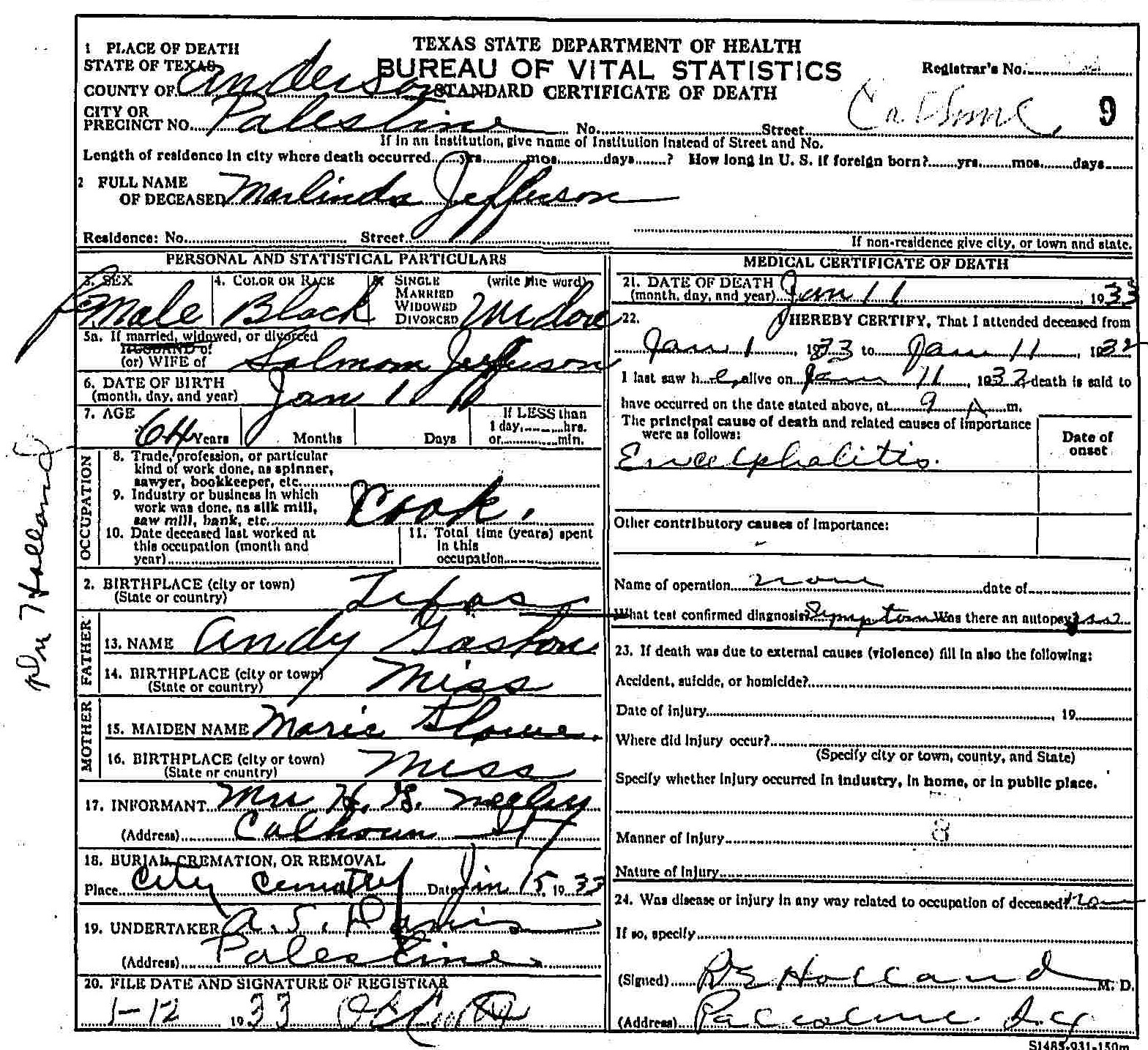 Born: January 1 1861 - Texas