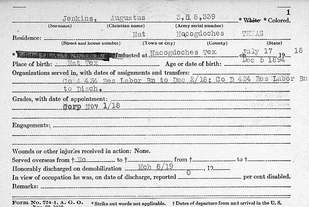 Born: December 5 1894/1903 - Nacogdoches, Texas