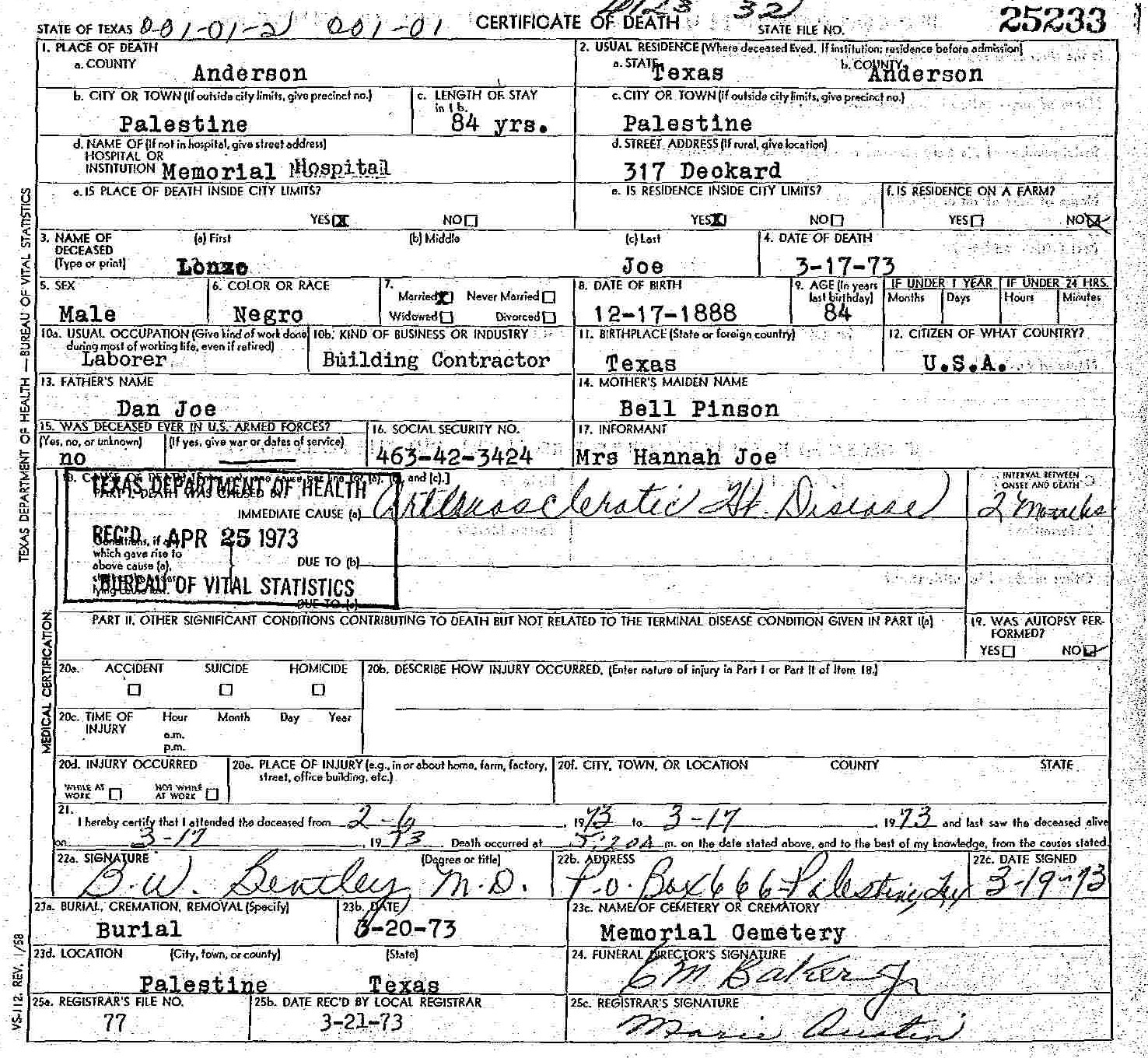 Born: December 17 1888 - Texas