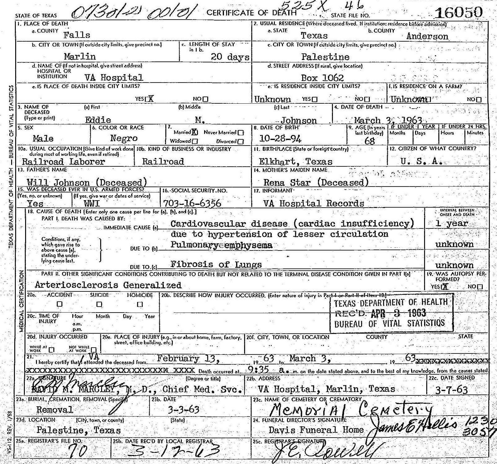 Born: October 28 1894 - Elkhart, Anderson,