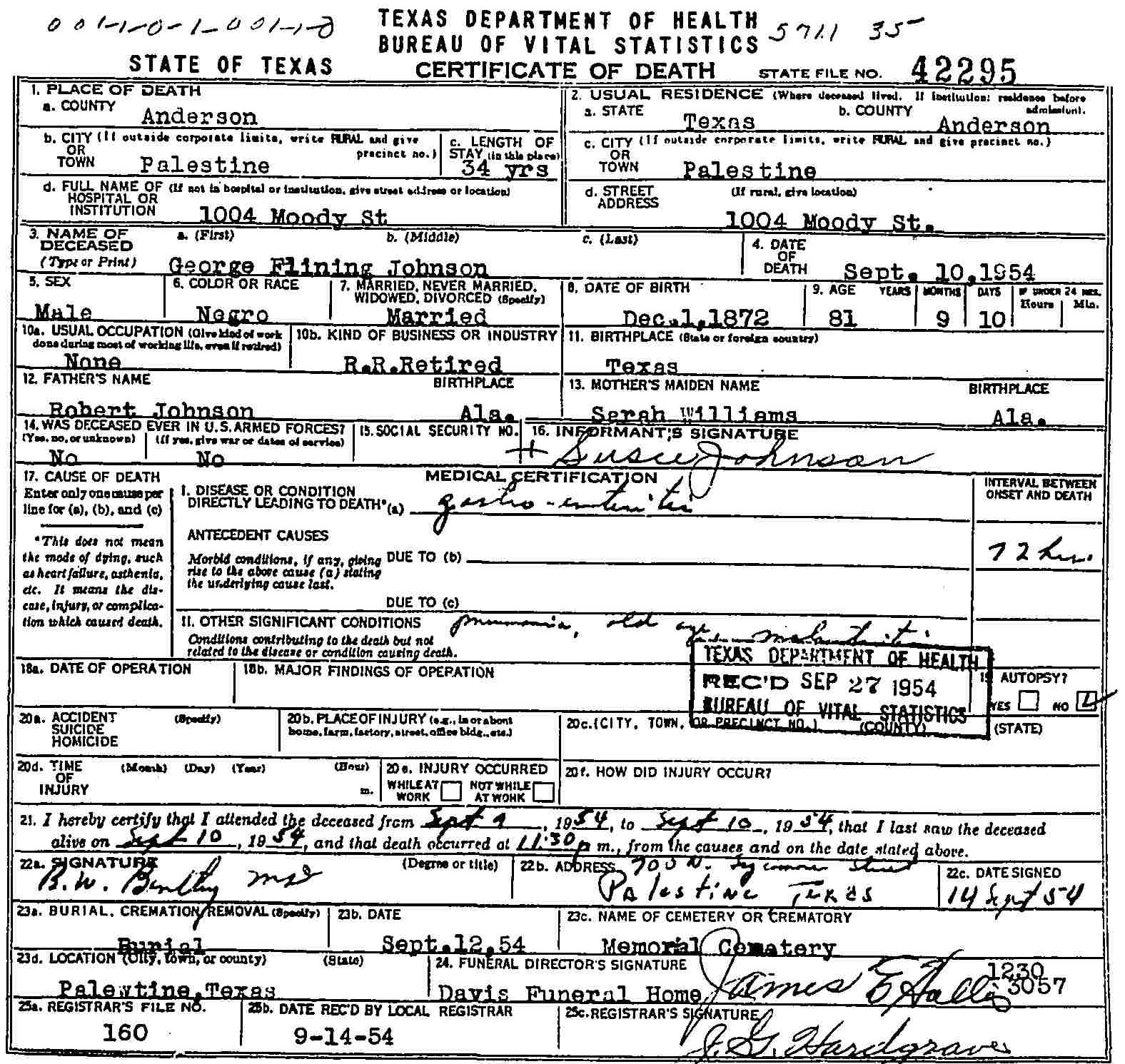 Born: December 1 1872 - Texas