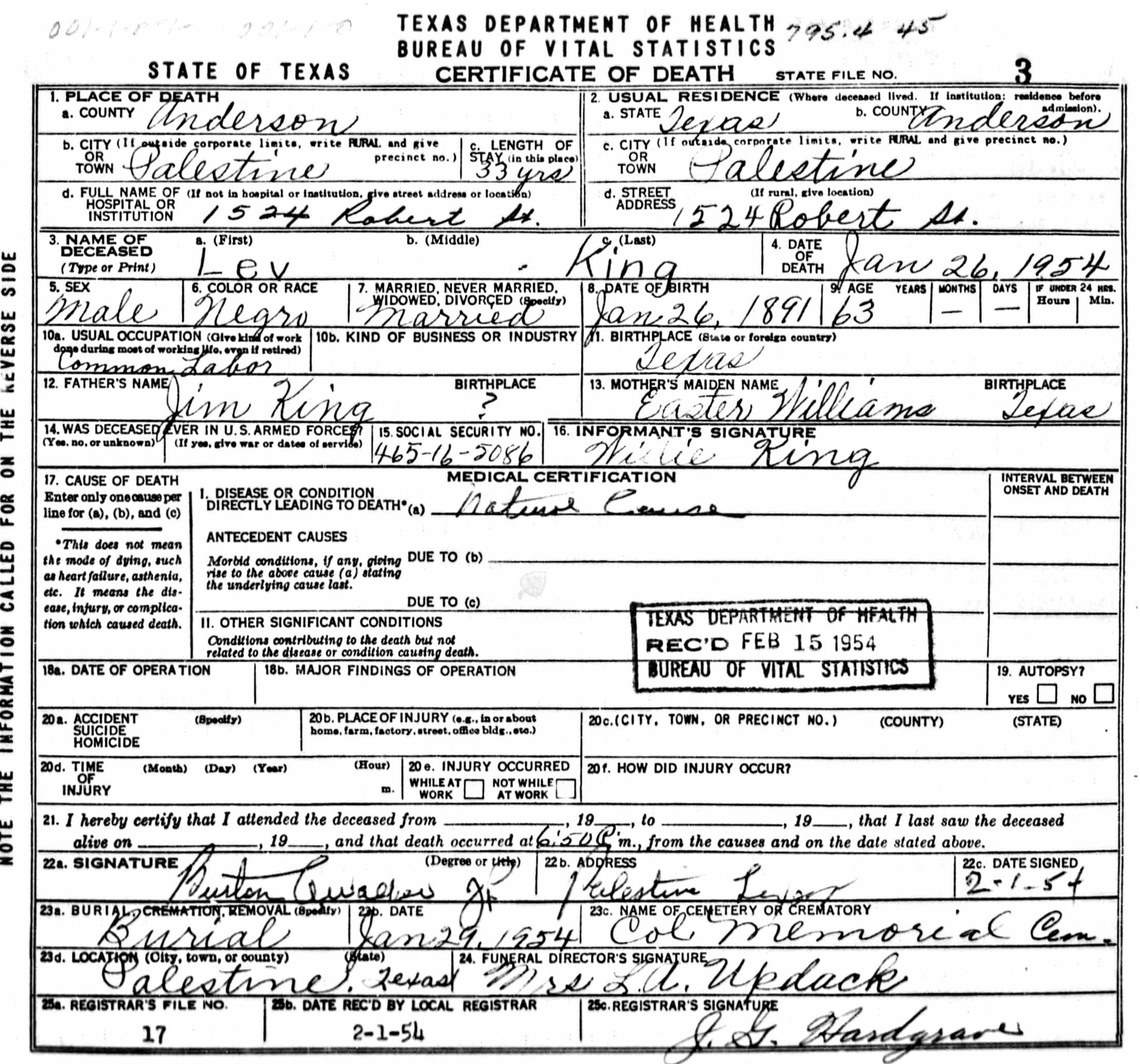 Born: January 26 1891 - Texas