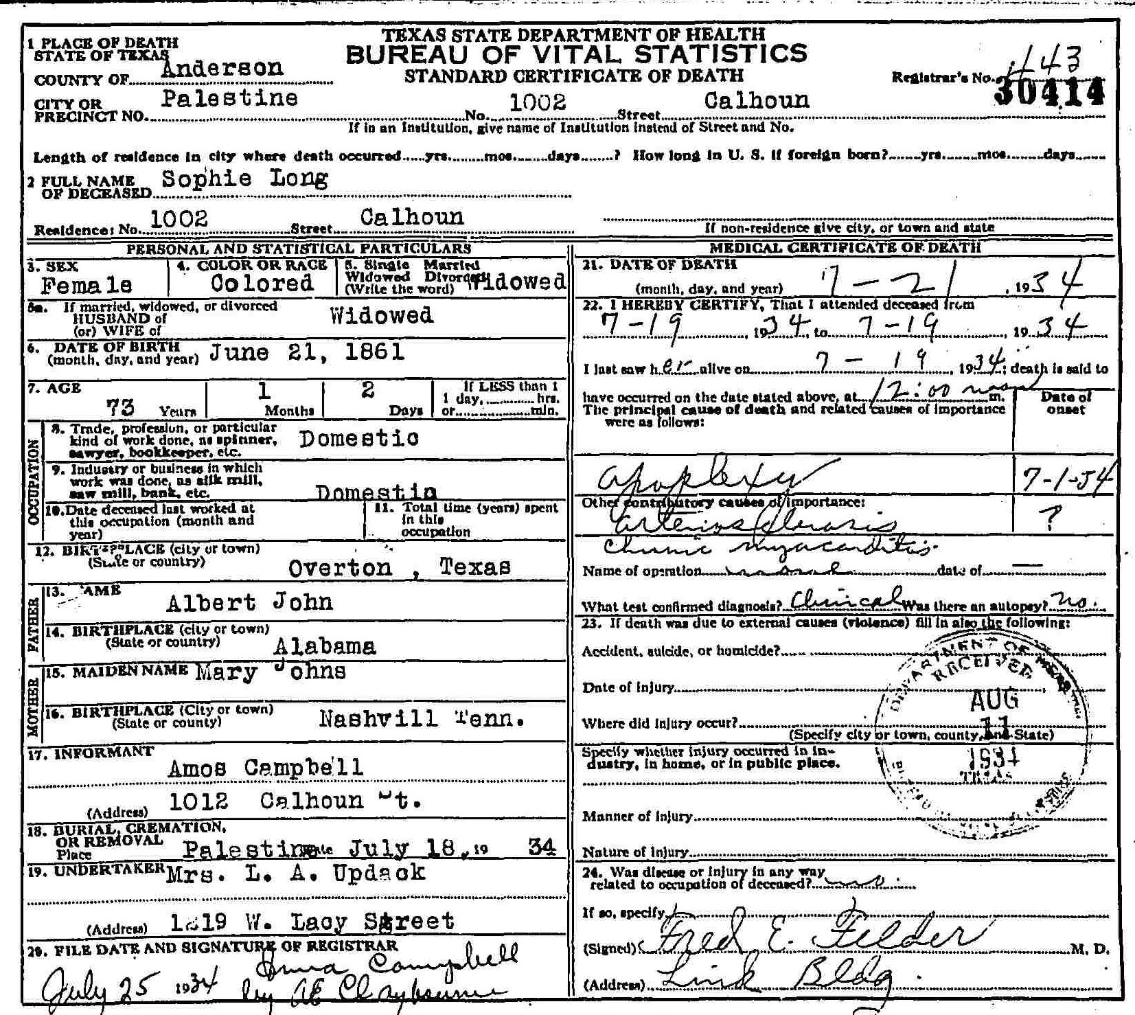 Born: 21 June 1851 - Overton, Texas