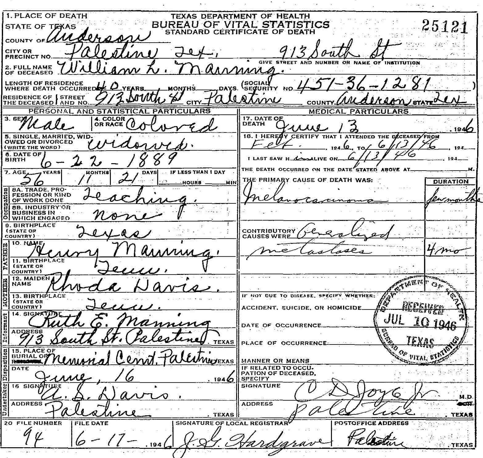 Born: 22 June 1889 - Texas