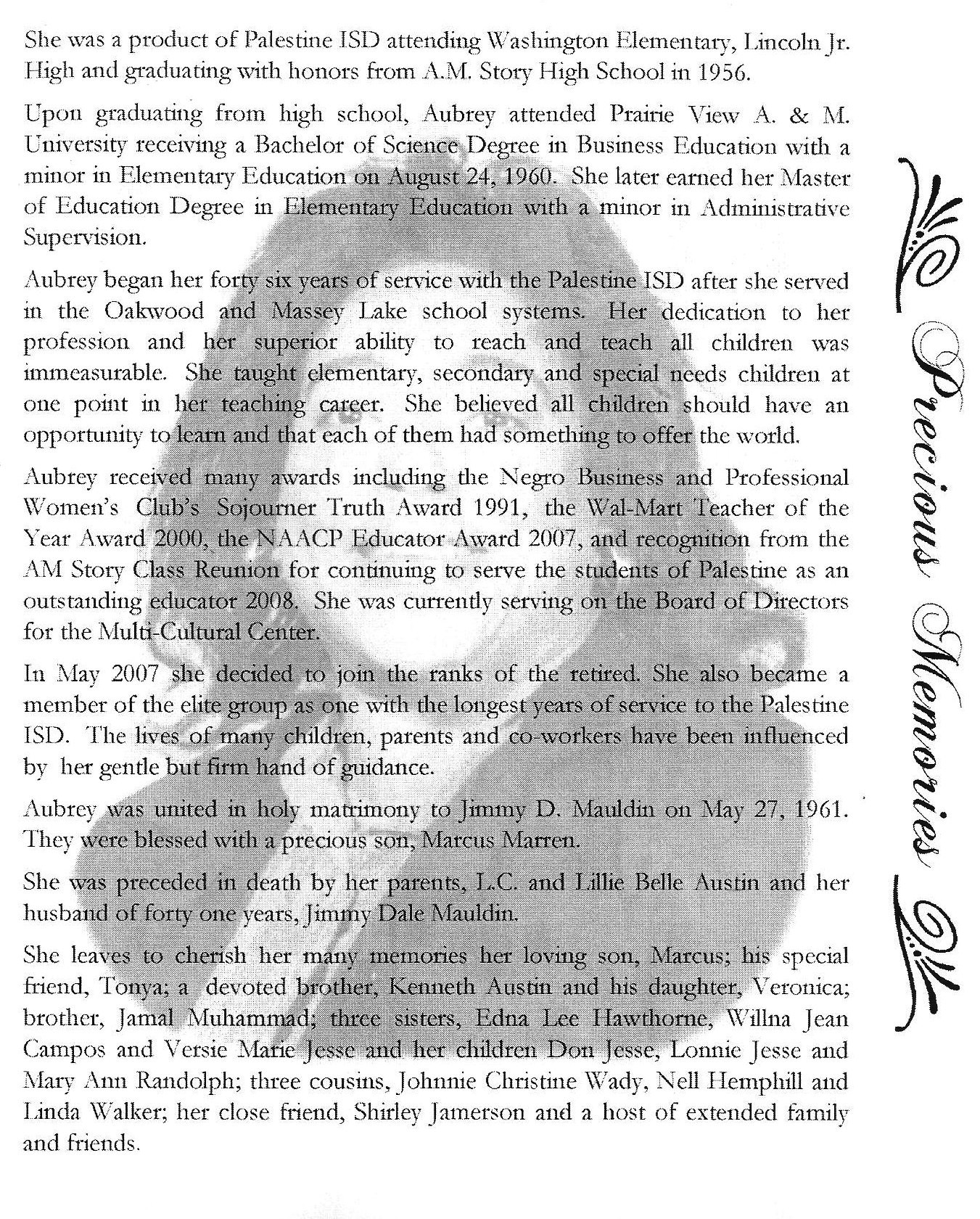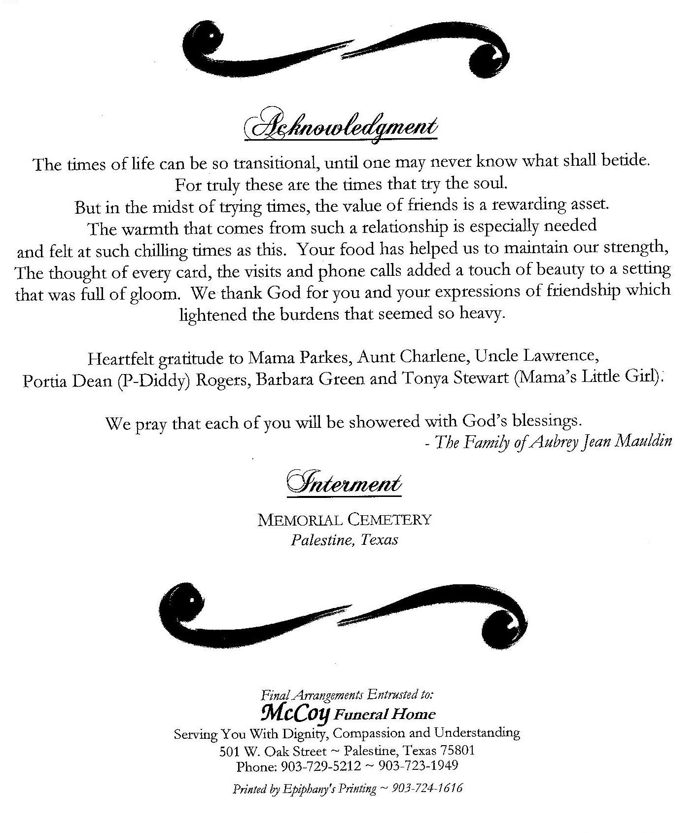 her husband of forty one years, Jimmy Dale Mauldin. She leaves to